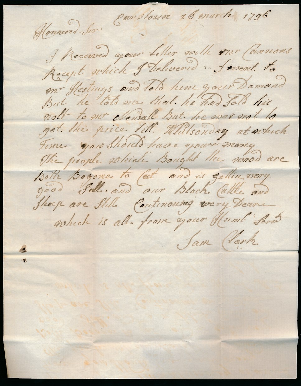 SCOTLAND 1796 NEW GALLOWAY SMALL 2 LINE + LETTER SAM CLARK to FALKIRK