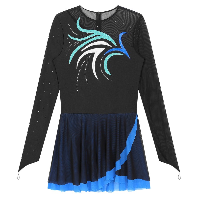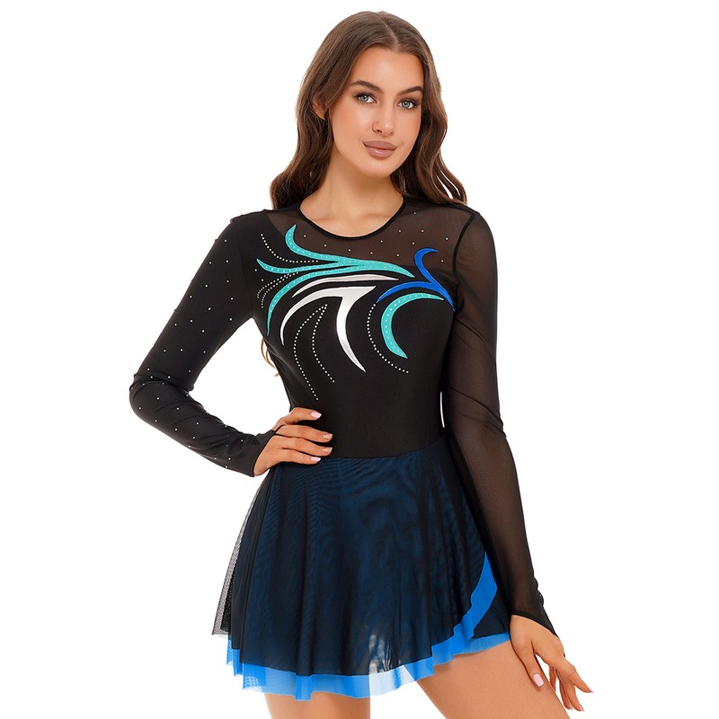 Women Dancewear Stage Leotard Rhythmic Dresses Rhinestones Exercise Sheer MeshUSD 12.59