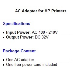 HP Deskjet All-in-One F2430 printer power supply cord cable ac adapter charger Store Inventory Reference Number: WBU-AAAAA-7597Store Shipping Code: PACK-743