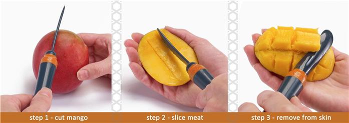 This tool does it all! The Mango Tool takes the guesswork out of cutting and preparing mangos! Easily open and enjoy a mango in three simple steps!