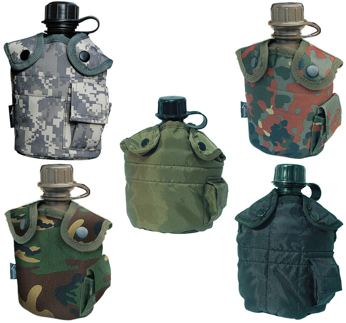 Army-Style Kunststoff-Feldflasche mit Nylonbezug
