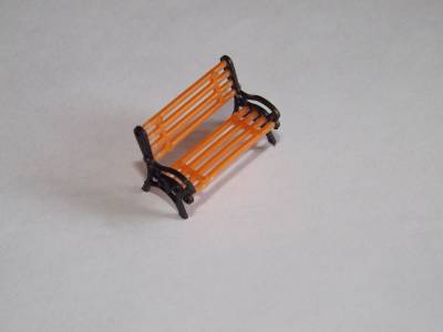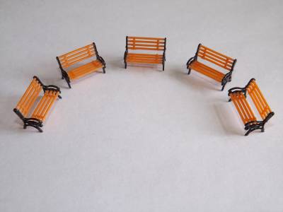 A pack of 5 black and orange model benches for your train layout, ideal for station platforms or park/garden benches.
