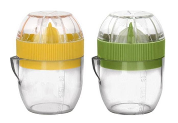 This handy citrus juicer will make a great addition to any kitchen or home bar. Comes with a 1/2 cup juice container, a juicer with strainer and a lid with serrated fins, designed to firmly grasp the fruit.