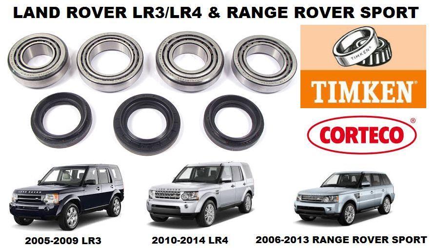 Front Differential Rebuild Kit for your 2005-2009 Land Rover LR3, 2010-2014 Land Rover LR4 and your 2006-2013 Land Rover Range Rover Sport. This kit includes all 4-bearings and 3 seals needed to fully rebuild the Front Differential on your Land Rover. If you are getting a whining or grinding noise coming from the front of your Land Rover, chances are your bearings are shot. If you do not act quickly in replacing them, you may end up doing severe damage to the ring and pinion. If that happens, your repair just went from a $500 fix to a $2000 fix. Purchase this set we put together in confidence knowing that you are getting quality, name brand parts. The bearings are made by TIMKEN in the USA and the seals are made by CORTECO in England.
