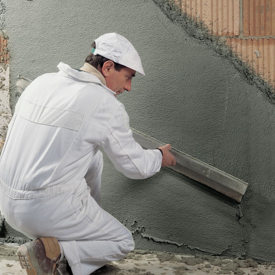 Spezieller, schnell abbindender Kalk-Zement-Leichtunterputz mit Fasern und Leichtzuschlägen, Leichtputz Typ II, für alle normalen, wärmedämmenden und hochwärmedämmenden Mauerwerksarten aus Ziegel, Porenbeton, Liapor etc. sowie Fertigteilwänden und sonstigen Wandbildnern, die noch mit Oberputz überarbeitet werden.