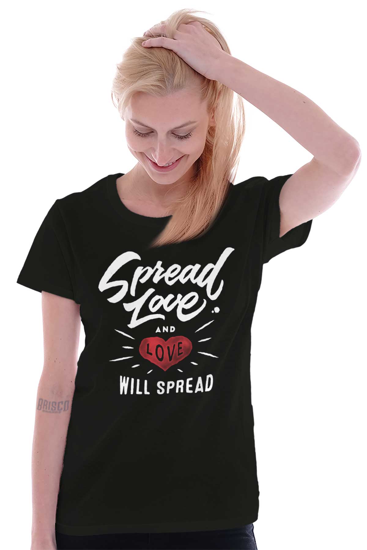 Spread love and radiate positivity with this design from Brisco Apparel. Imagine our world if we all showed a little more love and compassion for one another. By wearing this simple reminder you will spread love where ever you go. No one will come to you without leaving a little happier..