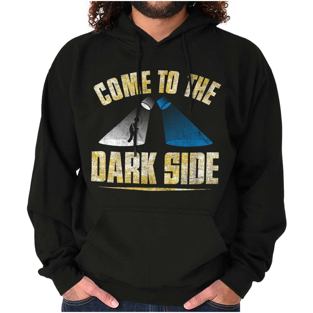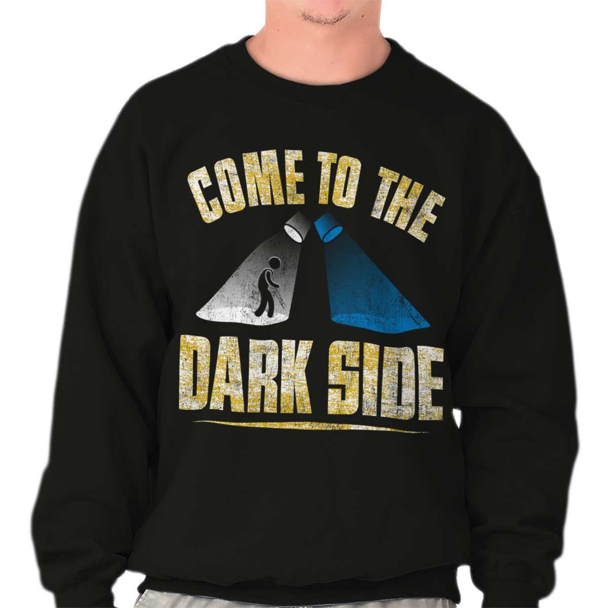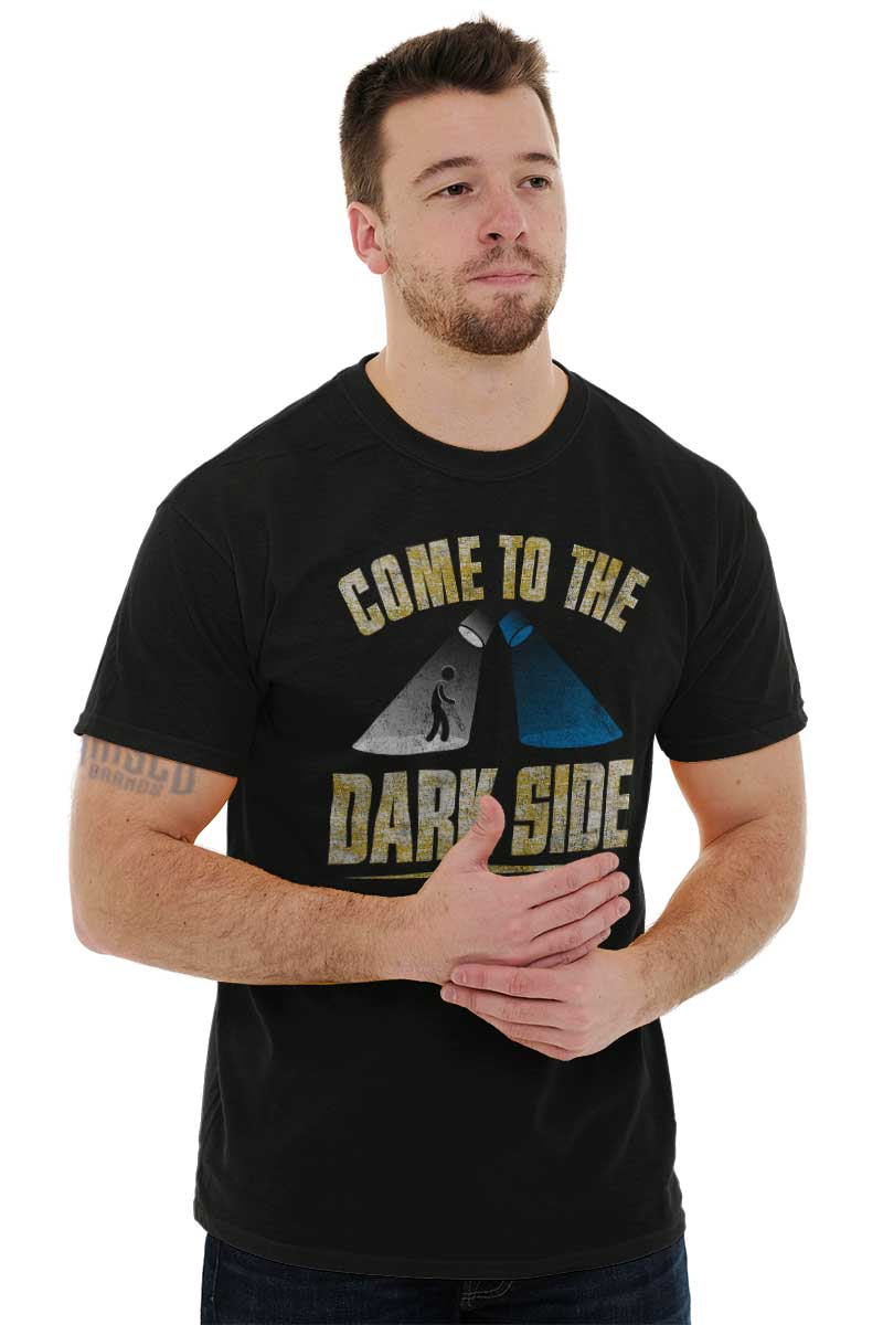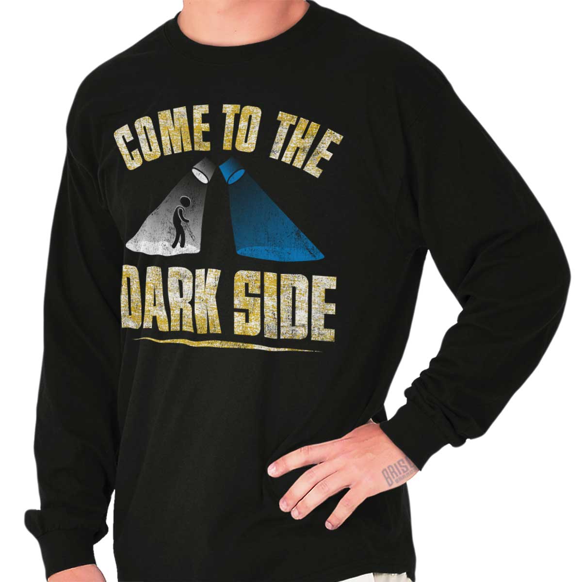 Light is boring. All you do is see clearly and how everything is suppose to be colored and such. Whatever the dark side is cool and makes everything have cool tone to it. Light hurts your eyes anyway, and the dark side you don't have any glare. Show people that the dark side is so much better than the light with this T Shirt. It is time to choose your role in the ever changing battle against light and dark. The dark side is better than the light and you never need to change any light bulbs either, because it is already dark.