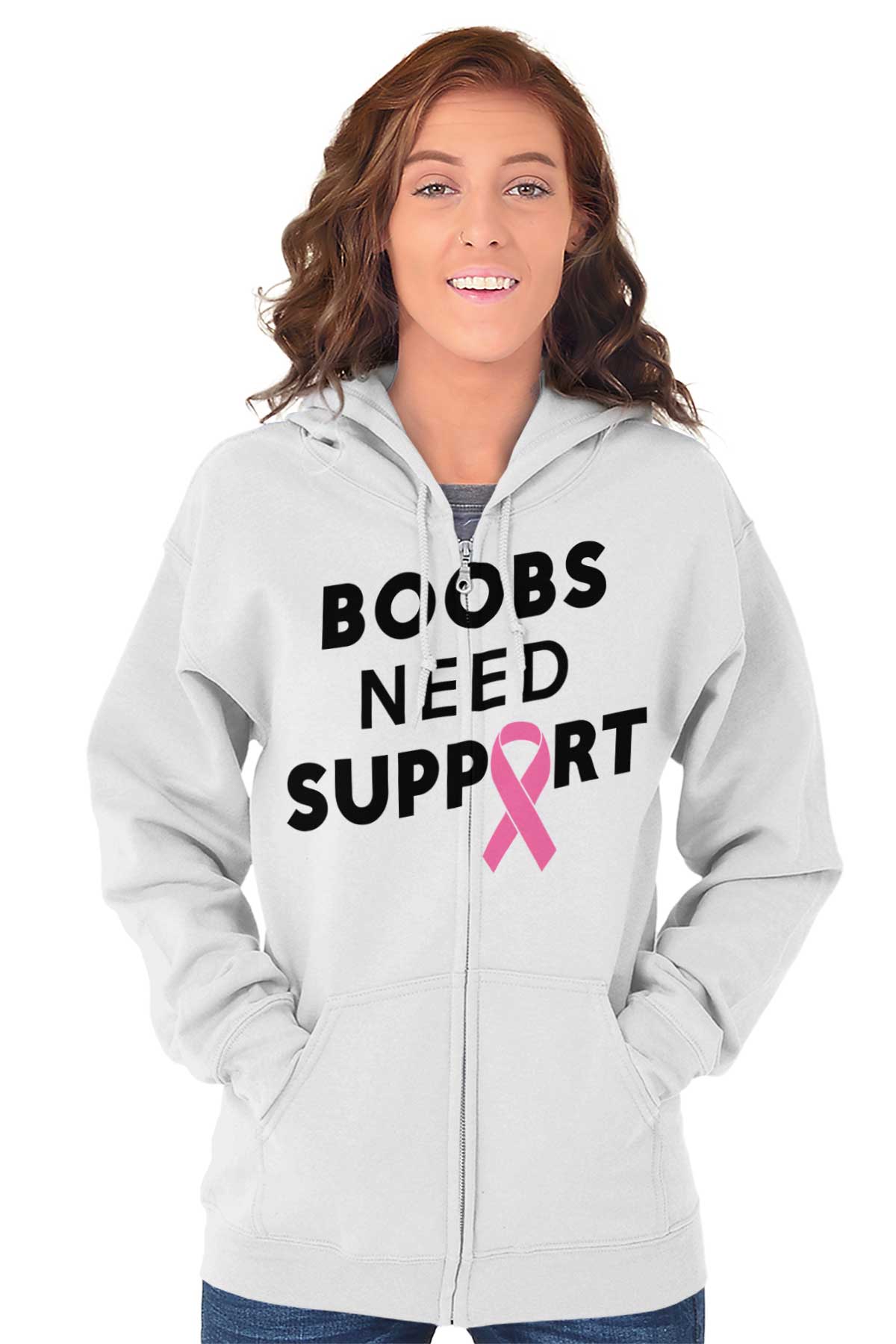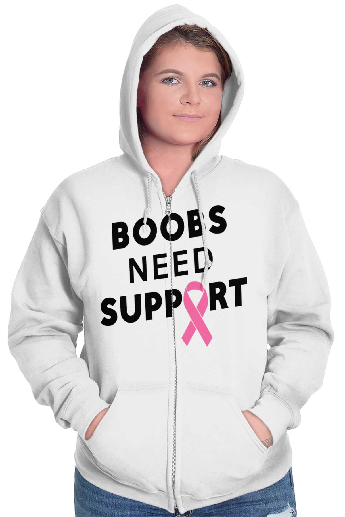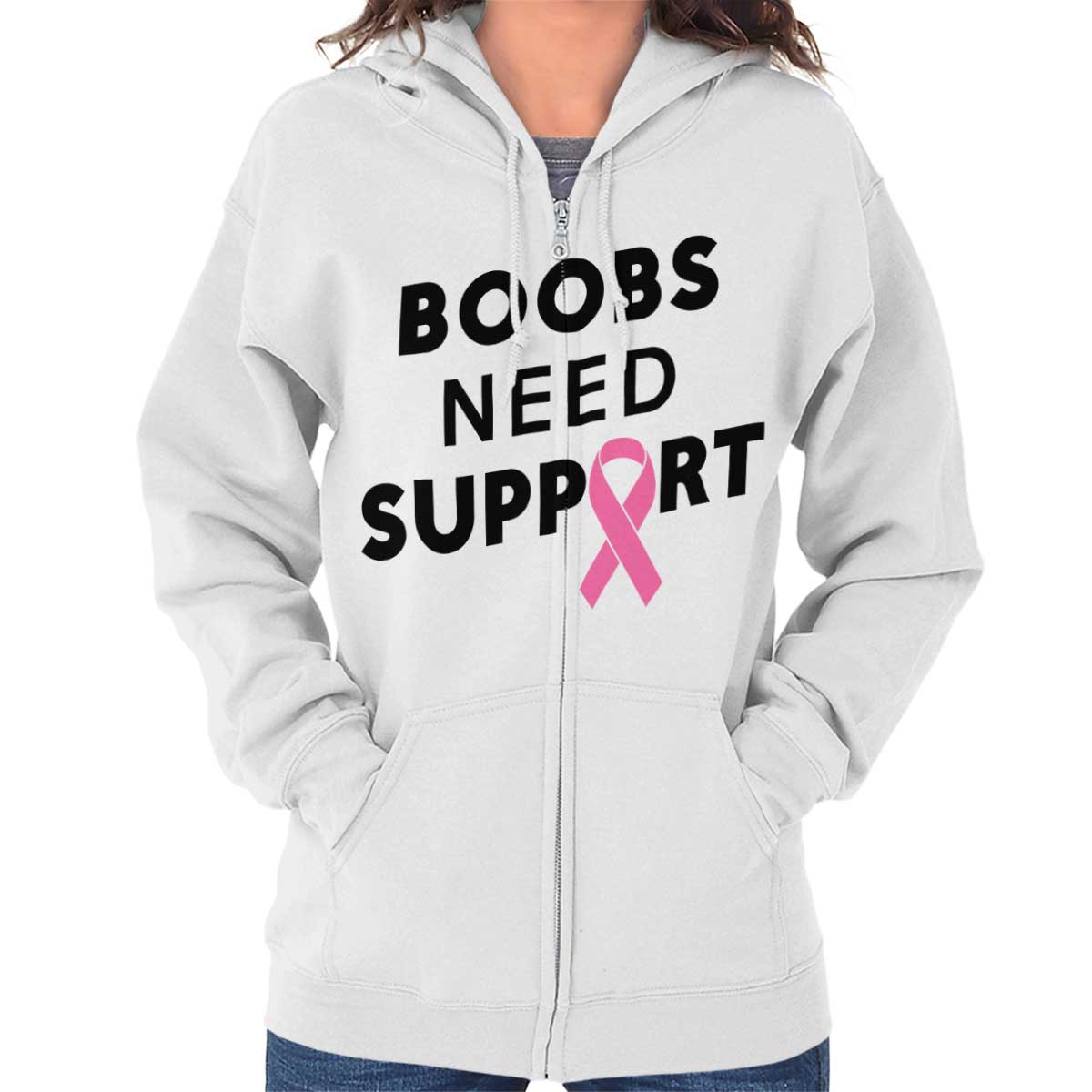 A lot of things need our support. Children need our support who are on their way to their first day of school. A teenager needs our assistance when shopping for a dress for their first school dance. Why? Because new experiences can be scary. And the one that boobies everywhere are going through right now has got to be the scariest. The new enemy that boobies are faced with has got to be the worst. So let’s be there for Boobies when Boobies need us most. Buy this Zip Hoodie and help raise awareness for Breast Cancer. Show Boobies everywhere your support.
