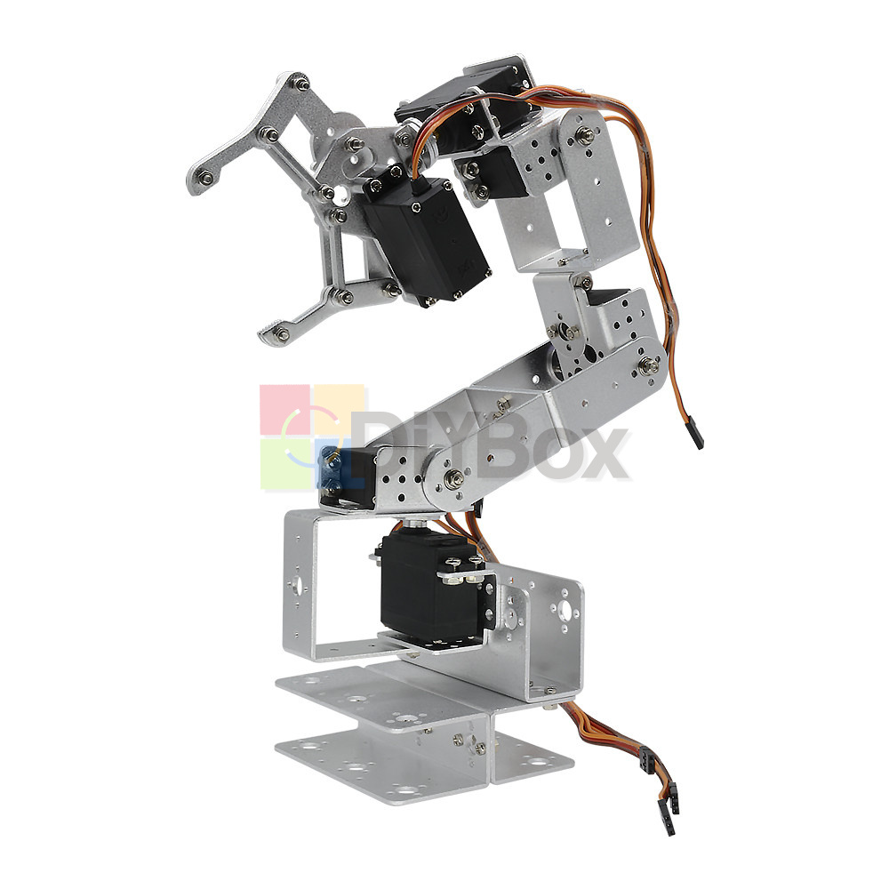 ROT3U 6DOF Aluminium Robot Arm Mechanical Robotic Clamp Claw for Arduino-Silver