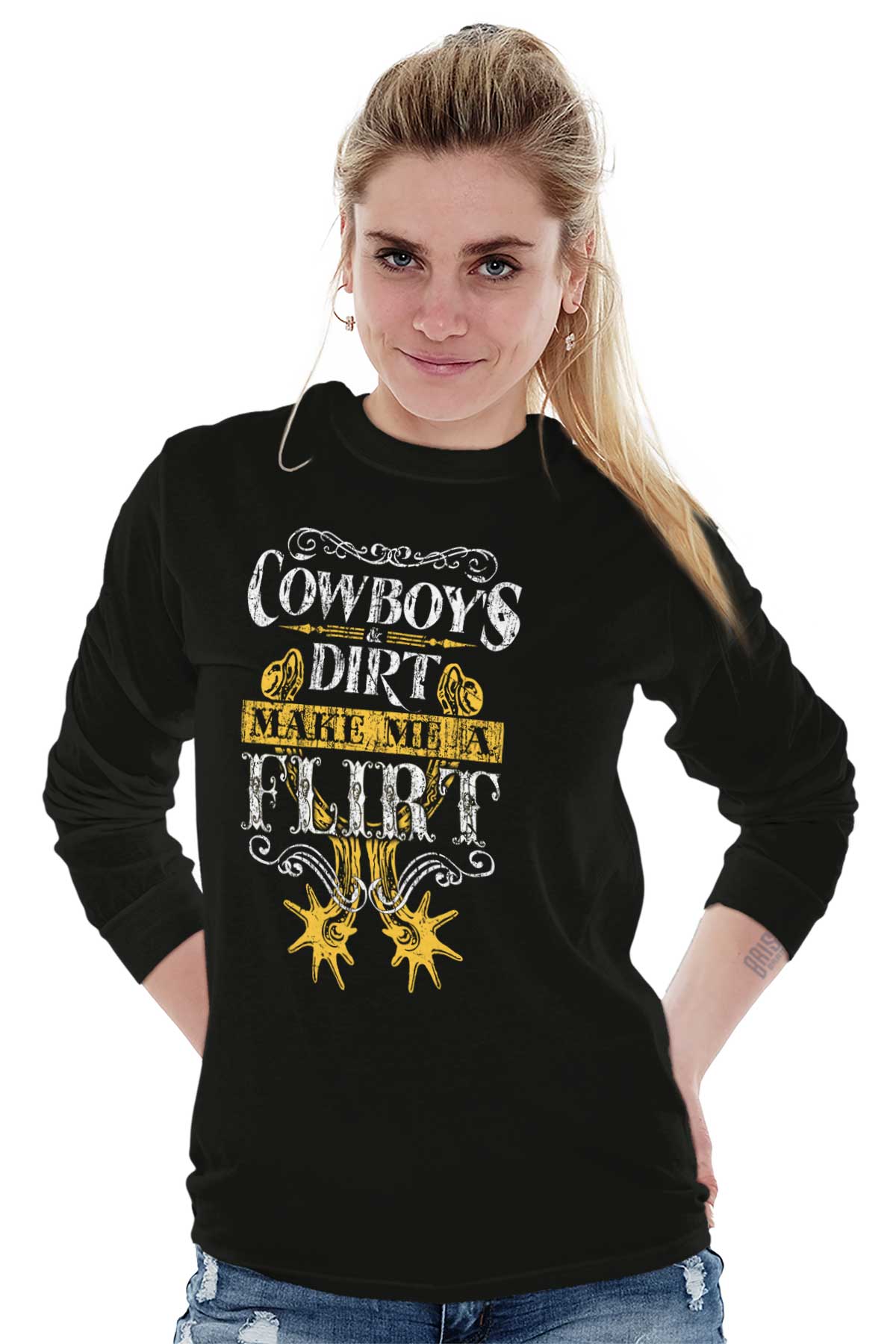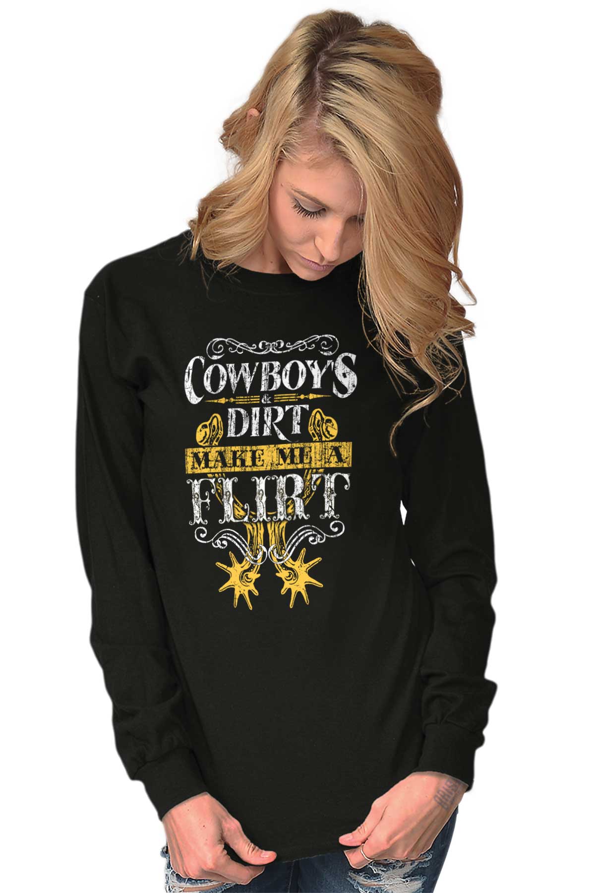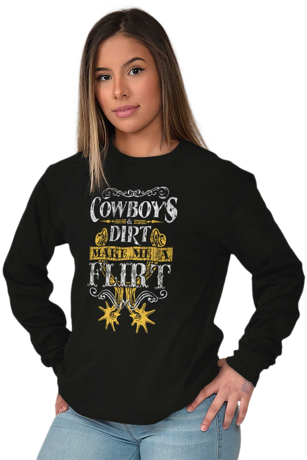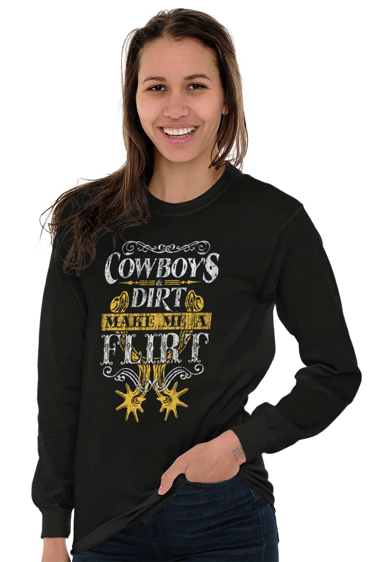 You’ve been known to be many things. No, no nothing bad or anything like that. Well, for starters - freaking gorgeous. Beautiful has been thrown around a lot. A few “cute in the sexiest way possible” from an ex or two. But a flirt? We haven’t heard much of that from people we’ve spoken to. To be truthful, you intimidate the heck out of most guys. Takes a lot out of a man to approach a pretty girl. And for you? Not every man’s got what it takes. For you? Only cowboys and dirt’ll make you flirt. Buy this Heavy Cotton Long Sleeve T-Shirt, and save the rest of these suckers’ breathe.