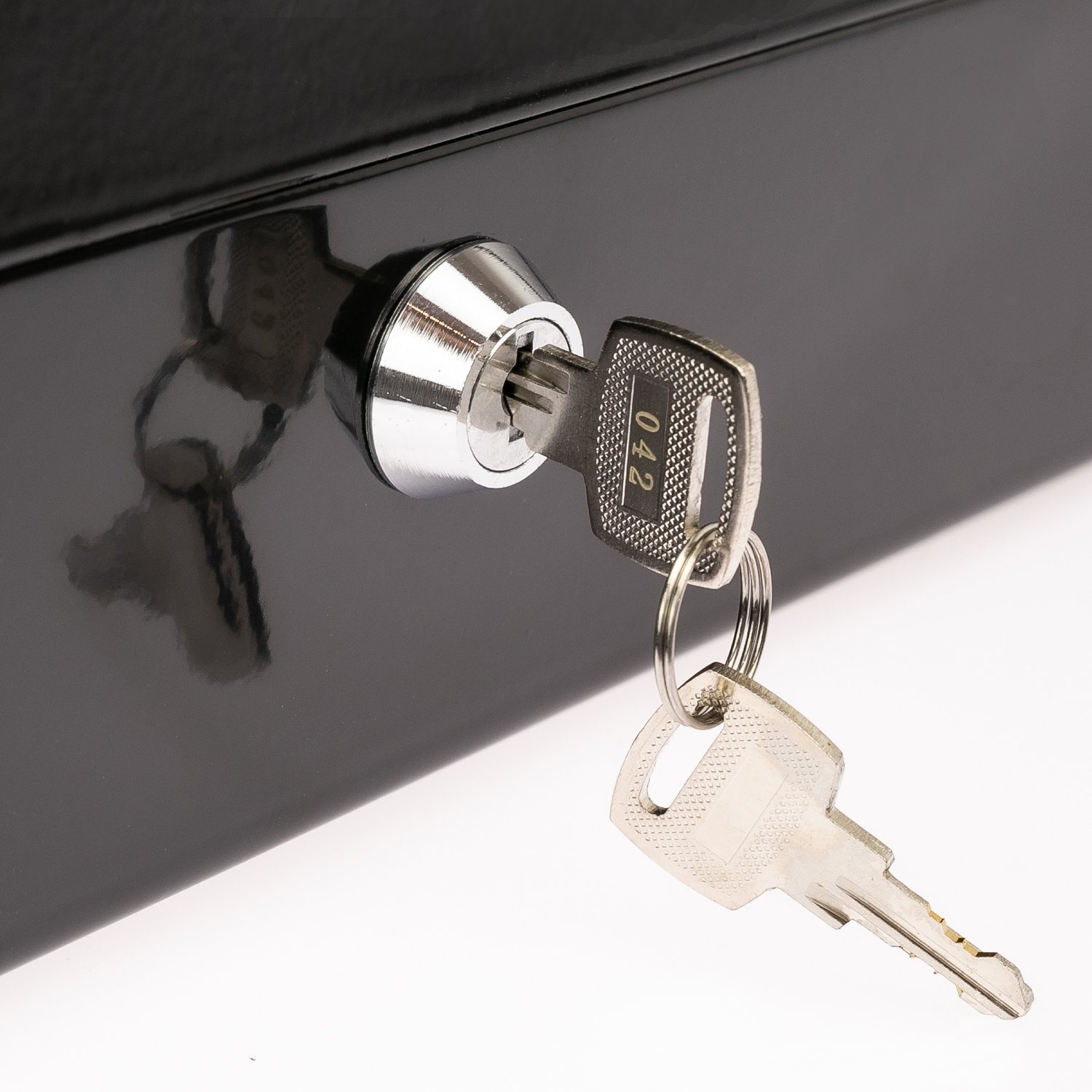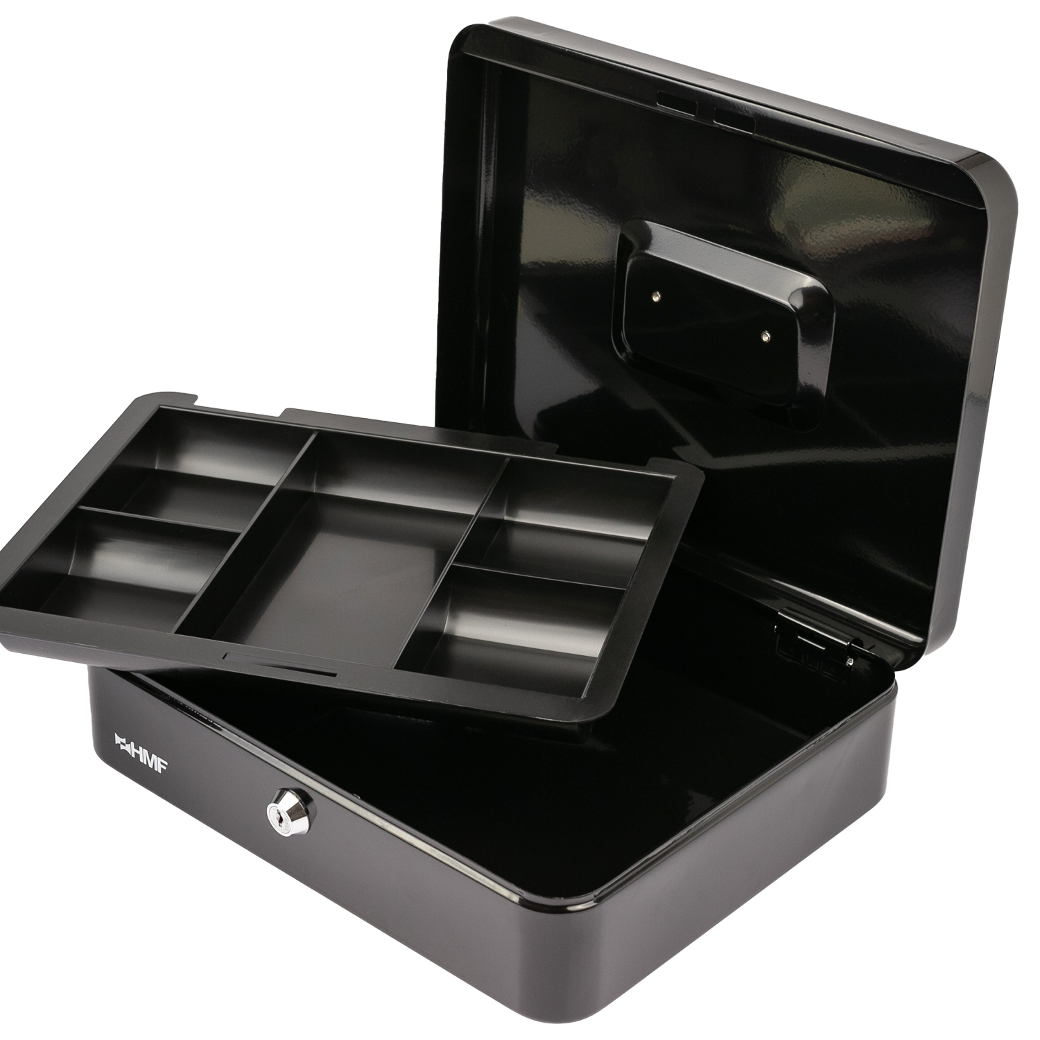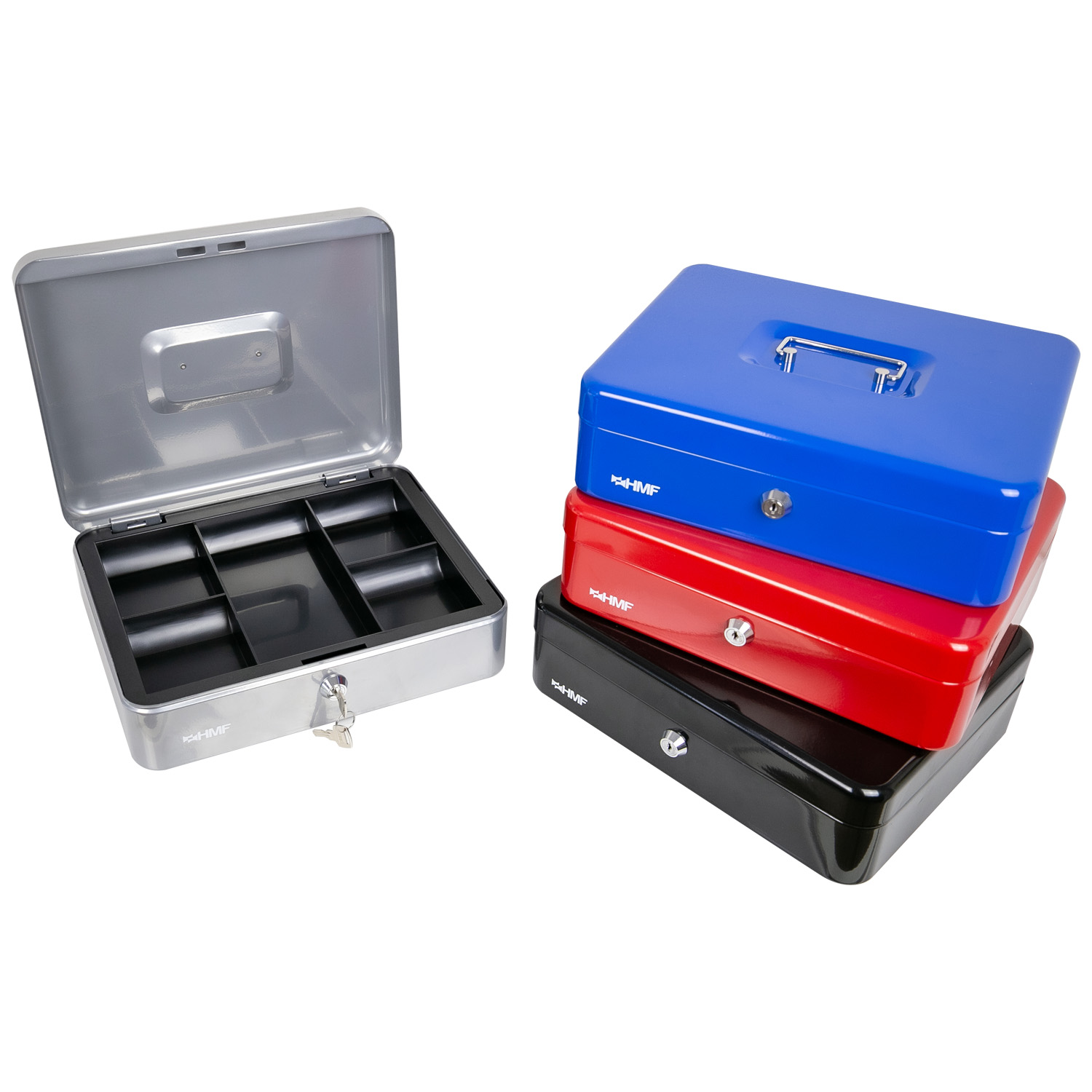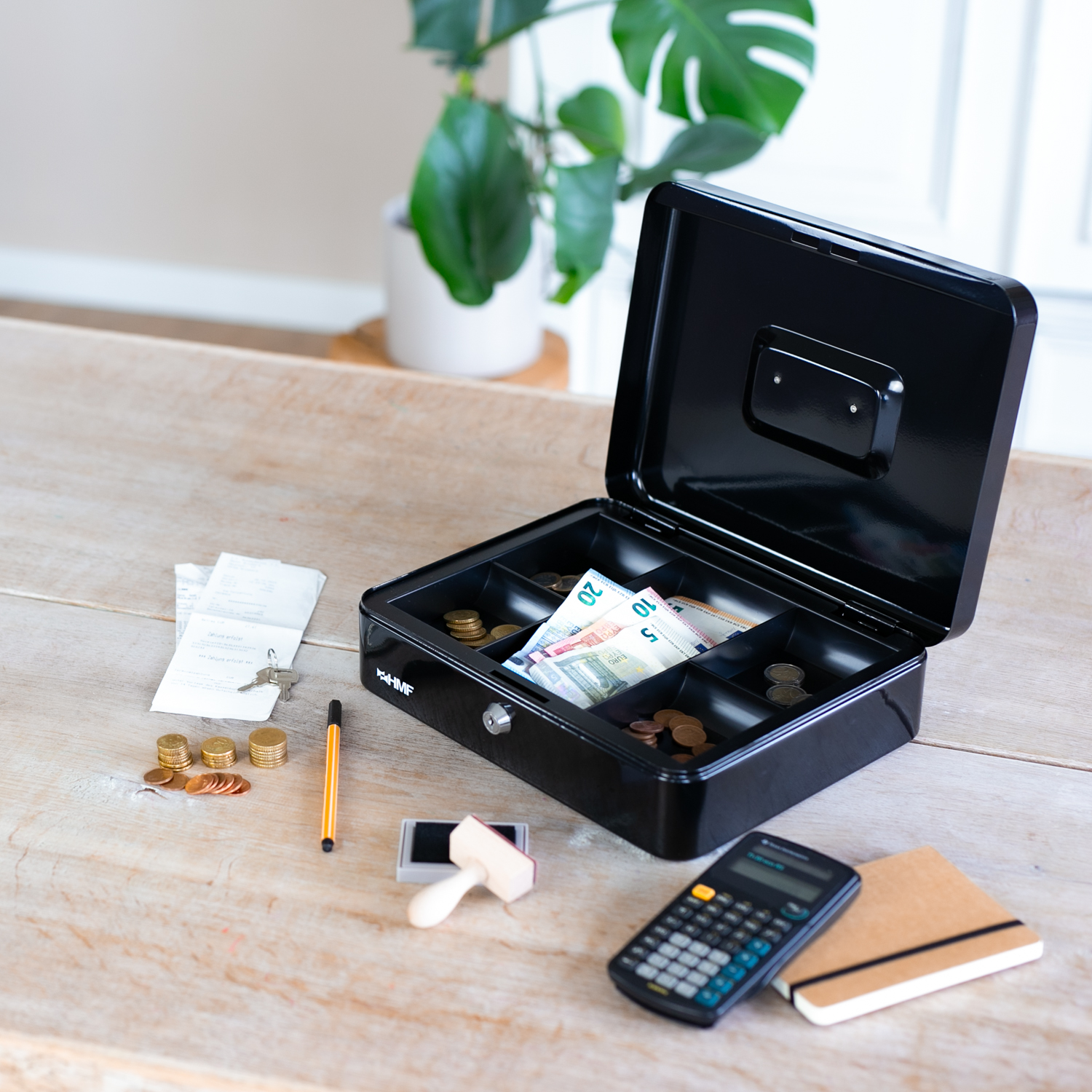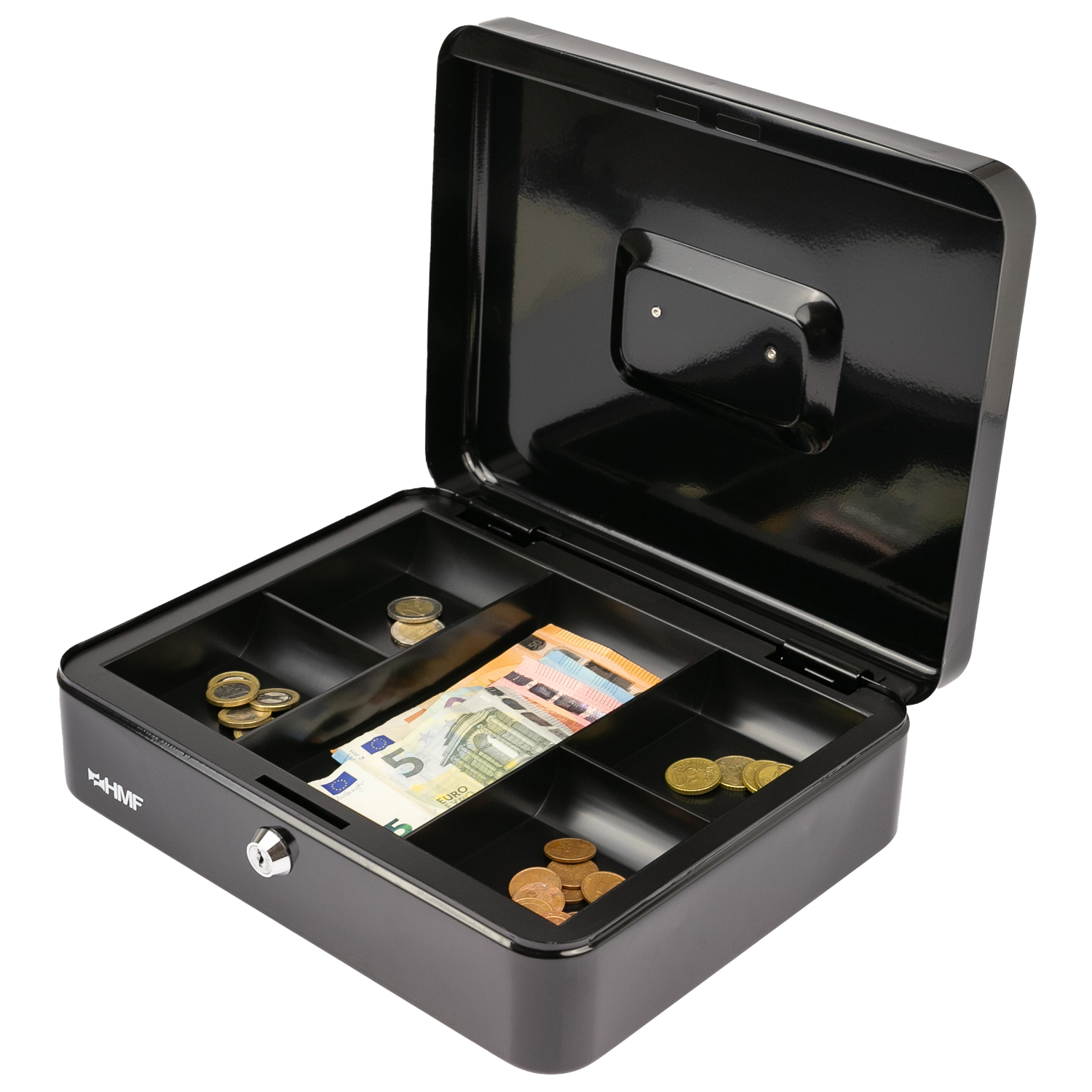 Die 30 cm Geldkassette von HMF überzeugt durch einen herausnehmbaren Münzeinsatz und hohe Qualität. Sie ist passend für DIN A4 Dokumente.