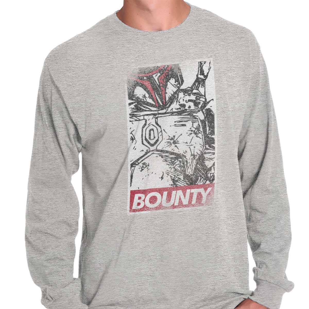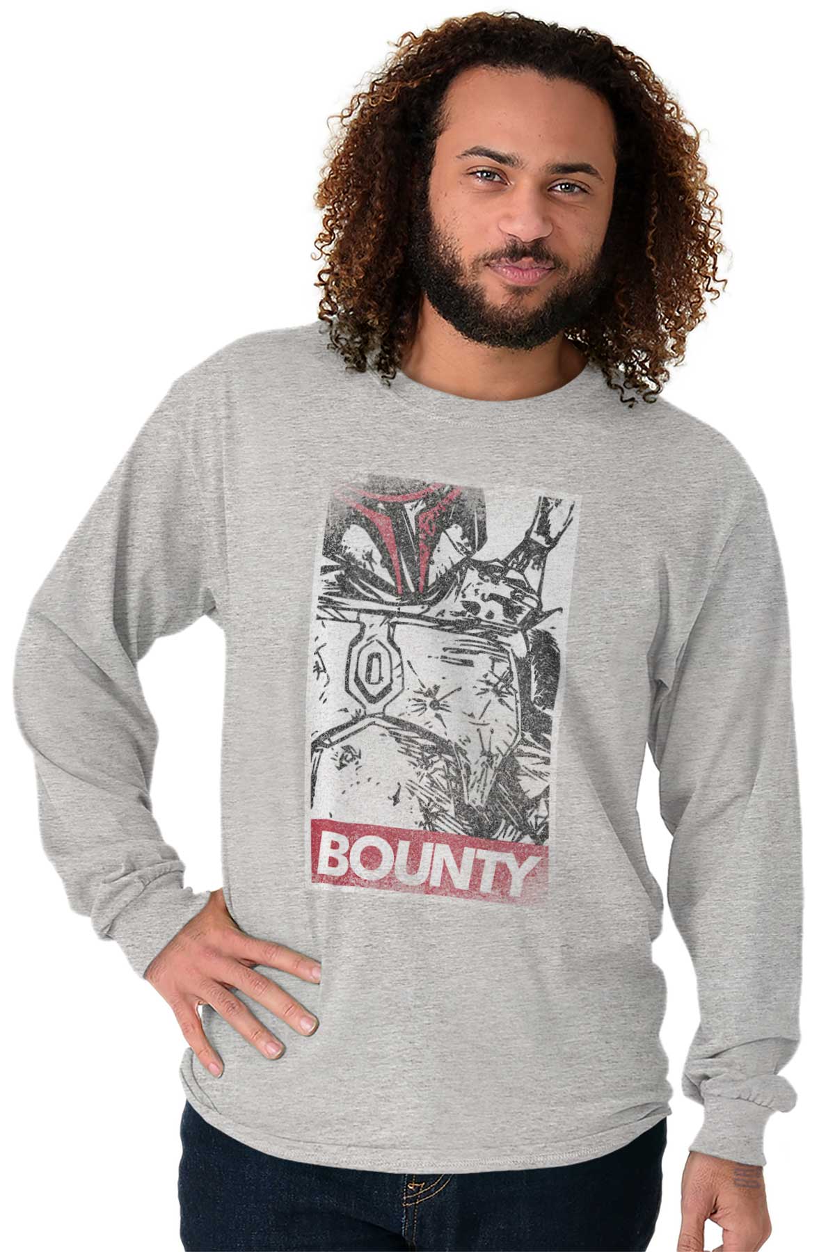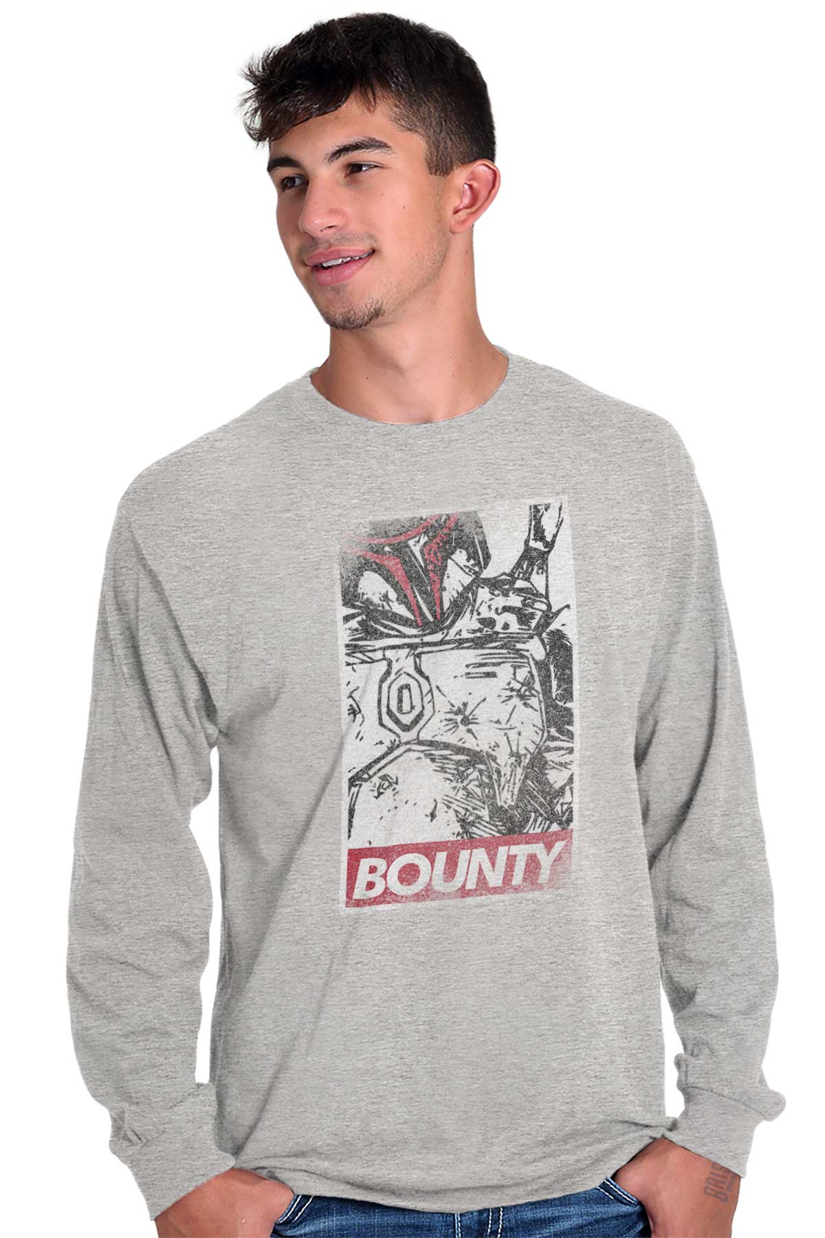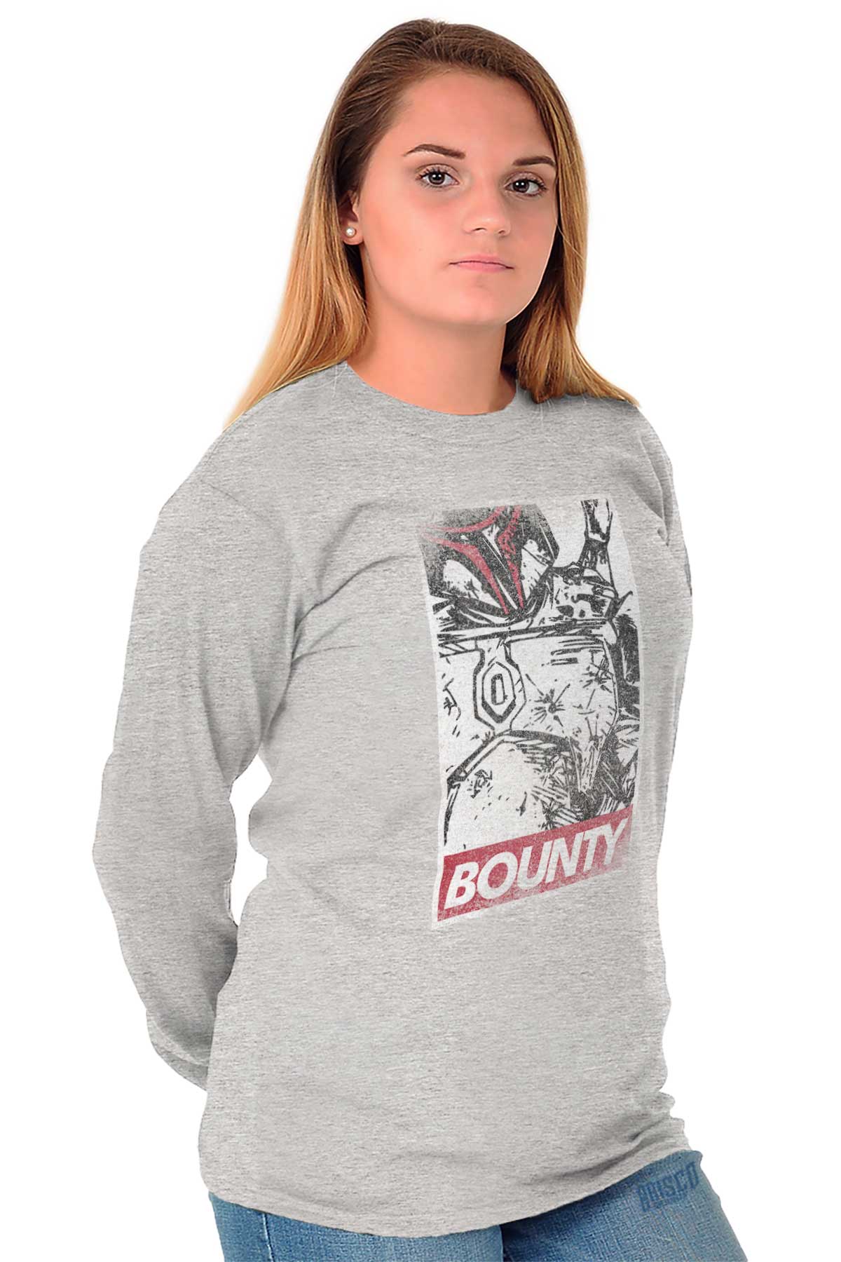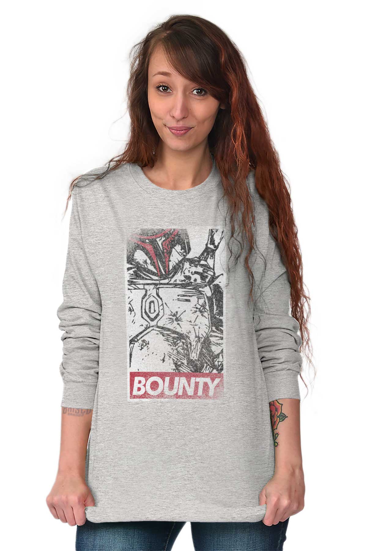 This Long Sleeve T Shirt is inspired by classic vigilante street art. Times have changed. There needs to be a new ideal and icon to celebrate. From one to another BOUNTY: this Long Sleeve T Shirt honors the most feared bounty hunter our galaxy has ever seen!