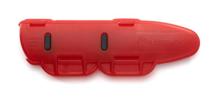 Wusthof's new Locking Blade Guard is the ultimate protection for all your valuable cutlery. Simply slip the blade in, and internal catches hold the guard tight until a release is pressed. Once snapped closed it won't accidentally open in transit, making the blade guard a useful tool for transporting knives to summer cottages, picnics, tailgate parties and campouts. The transparent polypropylene, dishwasher safe case lets one view the enclosed knife. The blade guard completely covers the blade and securely holds the knife in place for safe storage and transportation. Four sizes can accommodate a wide range of knife styles and lengths. Excellent protection with easy accessibility, all at minimal cost for professional or home use.
