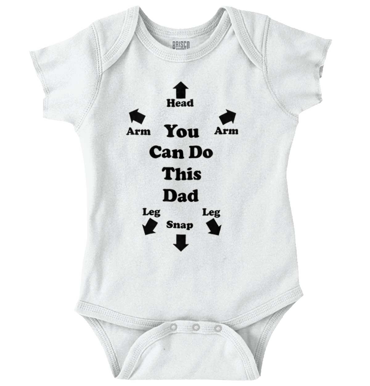 It is basic romper etiquette but, I suppose it's not easy for everyone. Fathers are good at many things when raising a child but, putting baby clothing on can be a bit difficult. This encouraging Romper Bodysuit is perfect for all dads who need instruction and a little encouragement. Motivation is important when raising a child because things can get a bit hectic and overwhelming. We want to make it as comfortable and easy for all fathers who may feel in-over their heads! This encouraging Romper Bodysuit is great for all you overwhelmed fathers out there!