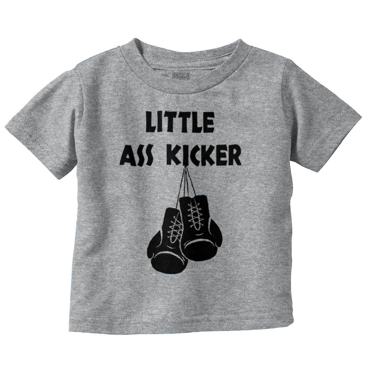 Life is like a boxing match: defeat is not when you fall, but when you refuse to get back up. Sure, your child may not understand, but one is never too young to proclaim their inner fearless fighting spirit. This boxing Infant Toddler T Shirt is for all the parents who are proud of their own little fighter, also known as their “Little Ass Kicker!” As the old adage proclaims, it is not the size of the kid in the fight; it is the size of the fight in the kid! And your child sure does pack quite a punch, no boxing gloves required!