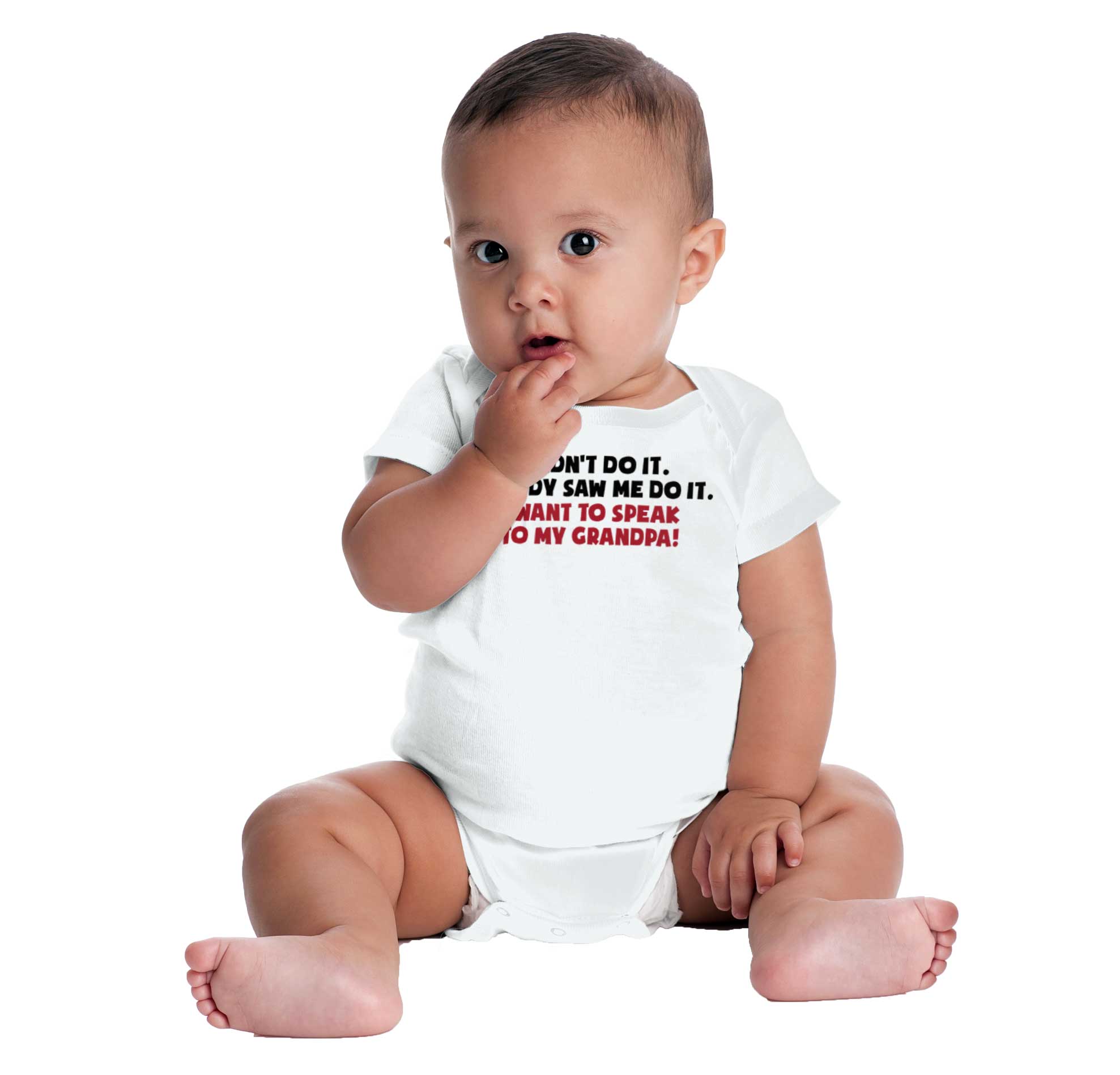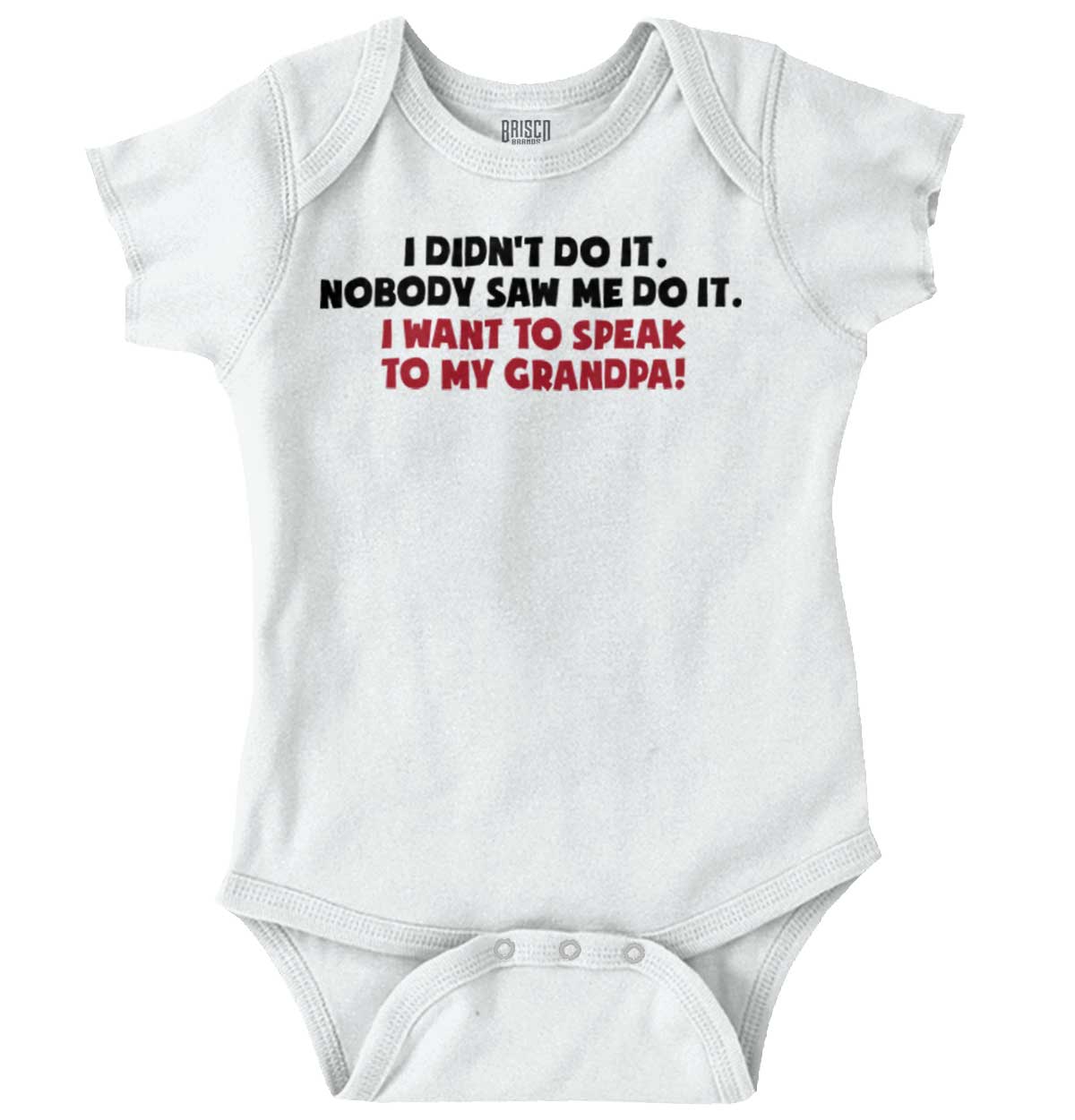 I want it on record that my client is not guilty of whatever absurd charges you have felt he deserved! (I'm speaking as the lawy- I mean Grandpa right now.) Anyway, you have no right to accuse since there are no witnesses and no real evidence, obviously my client is being discriminated against because they are a child! This type of unjust contempt for my client and babies everywhere needs to end! This grandchild Romper Bodysuit is perfect for your little baby because you are going to accuse it of a lot of things and Grandpa will always defend!