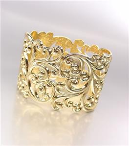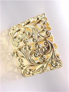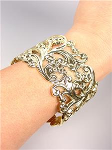 GORGEOUS Designer Gold Filigree Texture Oval Hinged Bangle Bracelet