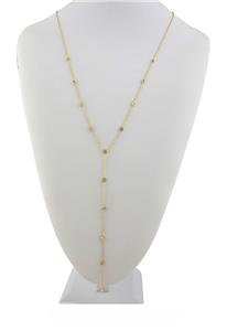 Oh So Unique & Sexy! Crafted with 18kt gold plated chain with bezel cut CZ crystals, this absolutely gorgeous unique 26" necklace features a long plunging 6 inches pendant chain with crystals. This 26" necklace lays comfortably to accentuate the long dangle crystals & chain pendant. The style is unique, sexy and very modern!