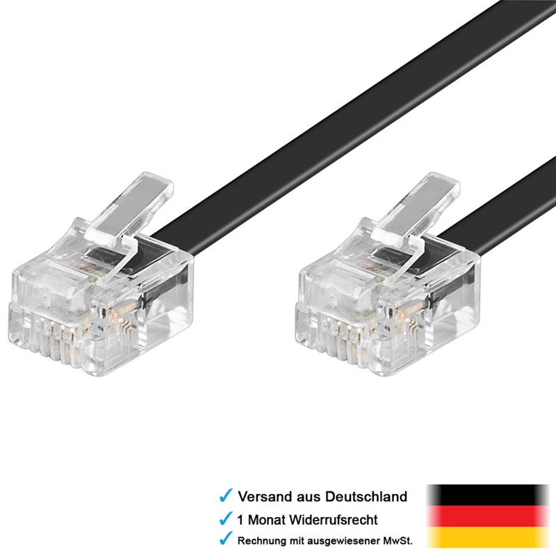 "BestPlug" 10 Meter Modular Telefon Kabel / RJ11 Stecker auf RJ11 Stecker / Schwarz