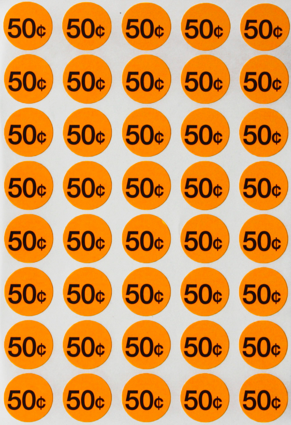 Preprinted Pricing Label ¾” 1040 - The 3/4" round (19mm) price stickers adhere firmly to many surfaces, small, big items like clothing, housewares, tools, books, boxes and etc. Great to use as garage sale stickers. Pre-printed price labels perfect to use in your garage sale, retail stores and any sales you are planning to organize. Bright Neon Orange colored pricing stickers that will help you grab your shopper's attention. This price stickers are great to be used as garage sale labels. The 3/4"" round (19 mm) price label adheres firmly to small and big items like clothing, housewares, tools, books, boxes and many other items. Bright neon florescent color preprinted pricing sticker that will help you grab your shopper's attention. The sale stickers are round and adhere firmly to many surfaces. Permanent adhesive. High quality. In this package, you will receive 1040 Price stickers. 40 round stickers per sheet. 26 sheets total. Available Prices: 25¢, 50¢, 75¢ 99¢, $1, $2, $3, $5, $7, and $9.99. |