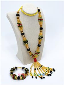 SET DE COLLAR CON IDDE PARA OSHUN IBU KOLE, LAS MEDIDAS DEL IDDE Y DEL COLLAR PUEDEN SER ESPECIFICADAS (EN PULGADAS). ESTE MISMO SET TAMBIEN PUEDE SER ORDENADO PARA CUALQUIER OTRO CAMINO DE OSHUN.