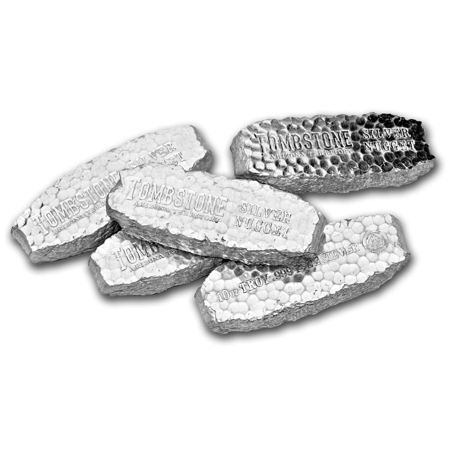 These Tombstone silver bars are crafted so each one has a slightly different shape, feature and personality. Add this unique 10 oz silver bar to your cart today!