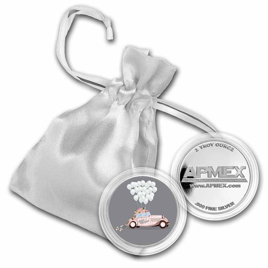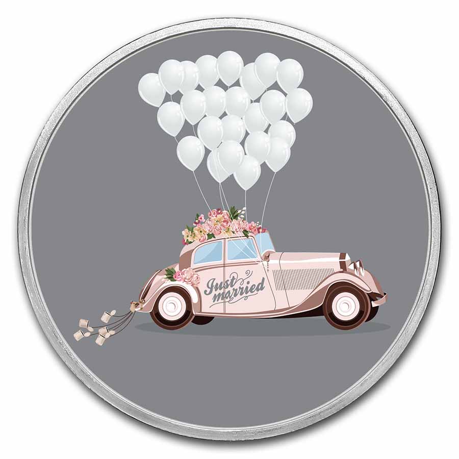 These APMEXclusive® colorized rounds are ideal for giving to friends, family members or loved ones, as they truly are a gift that lasts a lifetime. Add this beautiful, full-color 1 oz Newlyweds Silver round to your cart today!