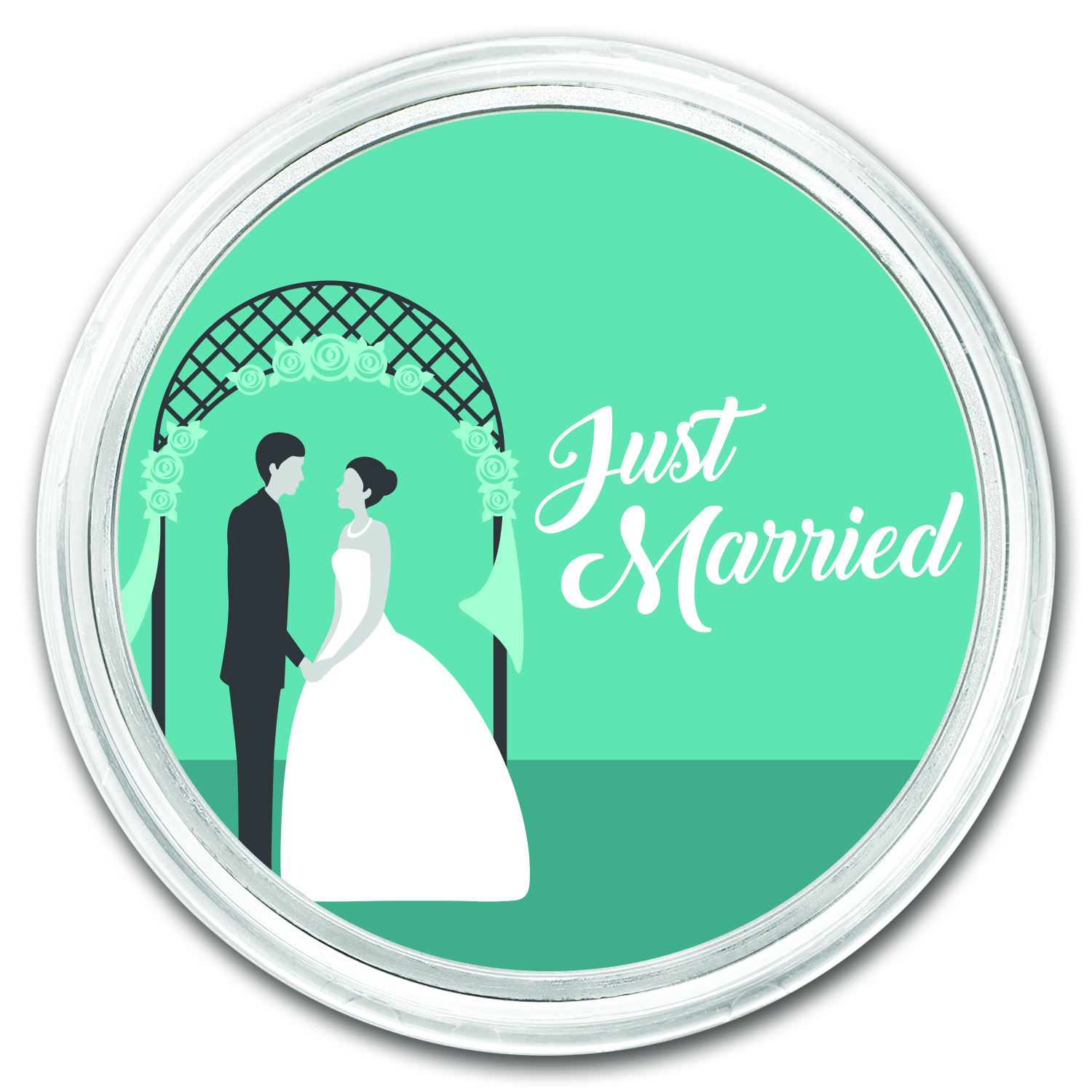 1 oz Silver Colorized Round - APMEX (Just Married - Couple)
