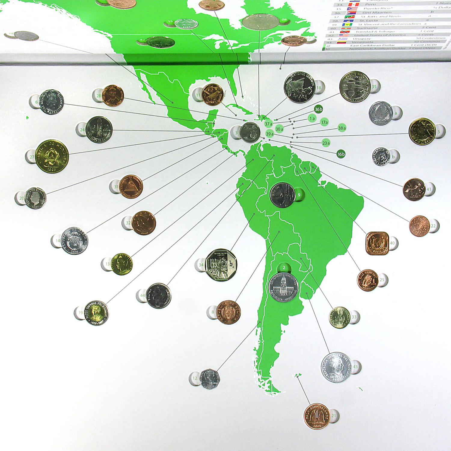 - Comes in a beautiful booklet showing a map of the Americas with spaces for each coin.