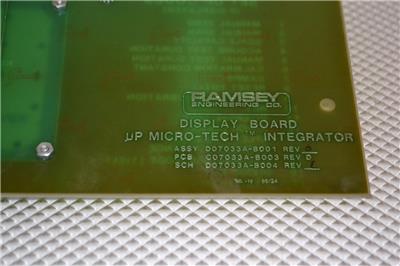 THIS LISTING IS FOR ONE USED RAMSEY ENGINEERING UP MICRO-TECH INTEGRATOR DISPLAY BOARD. THE PRODUCT NUMBER IS C07033A-B003.