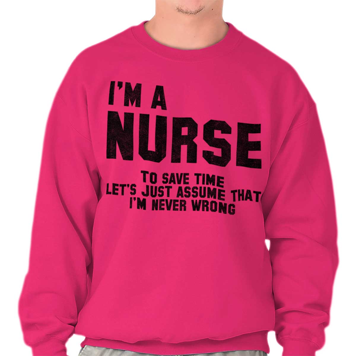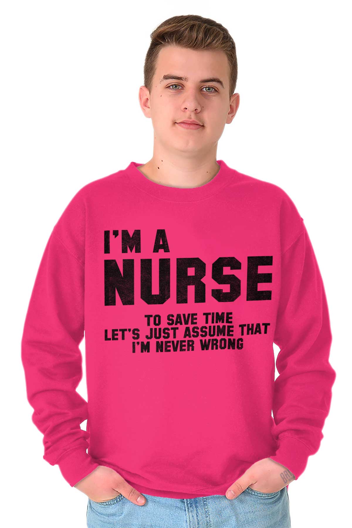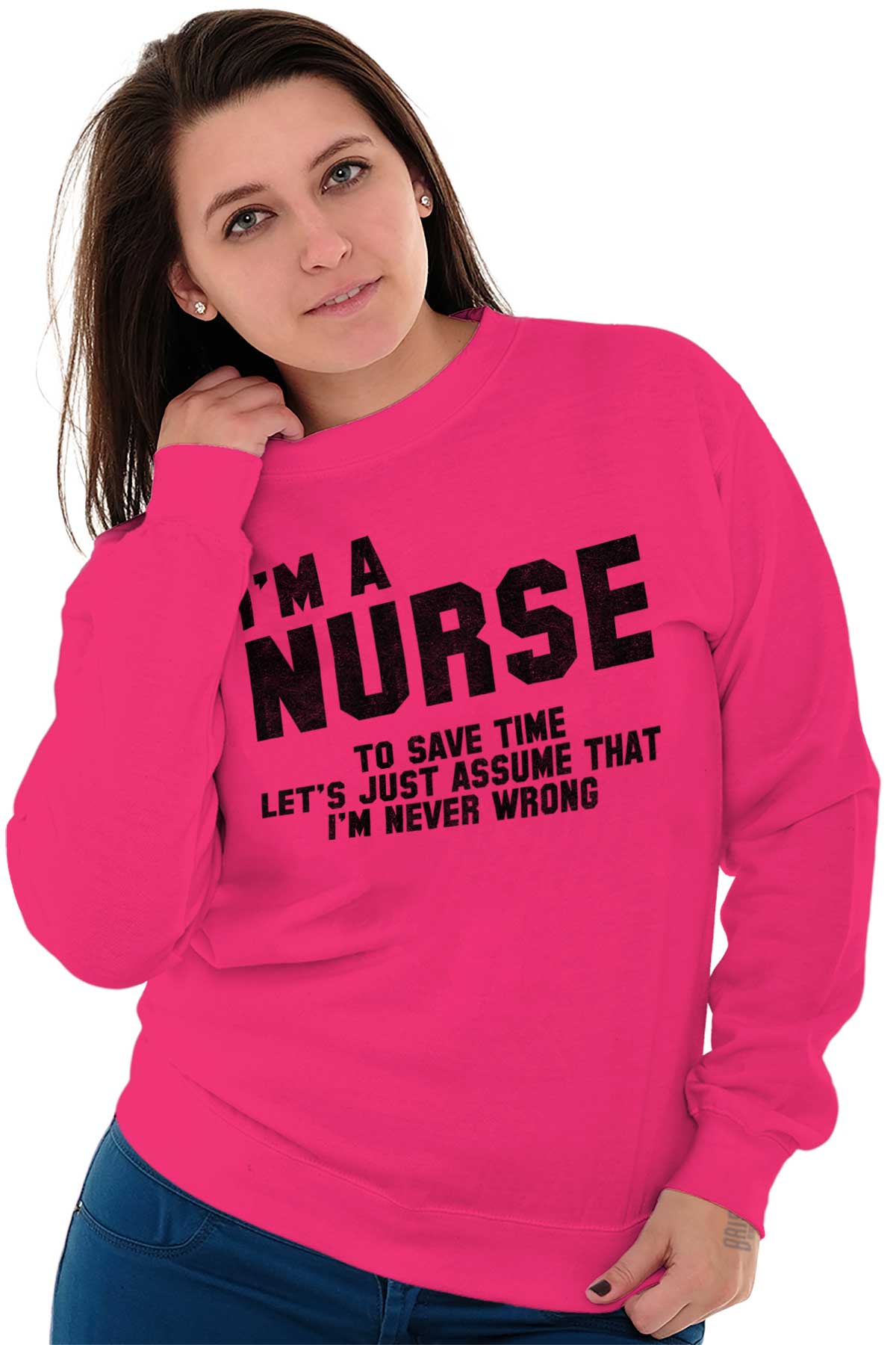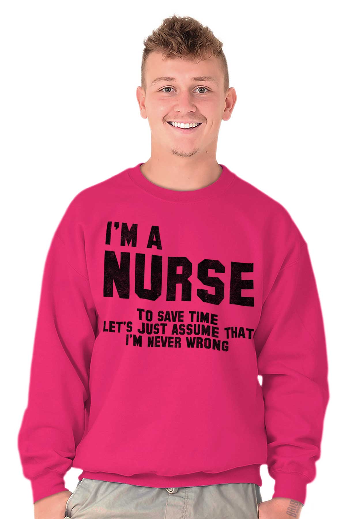 Nurse Save Time Never Wrong Funny Job Career Crewneck Sweat Shirts Sweatshirts
