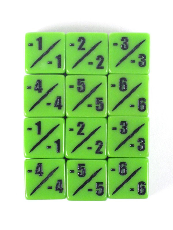 This auction is for a Brand New 12 piece (12d6) set of premium -1/-1 MTG Counter Dice. These dice are for use with the Magic: The Gathering Trading card game.