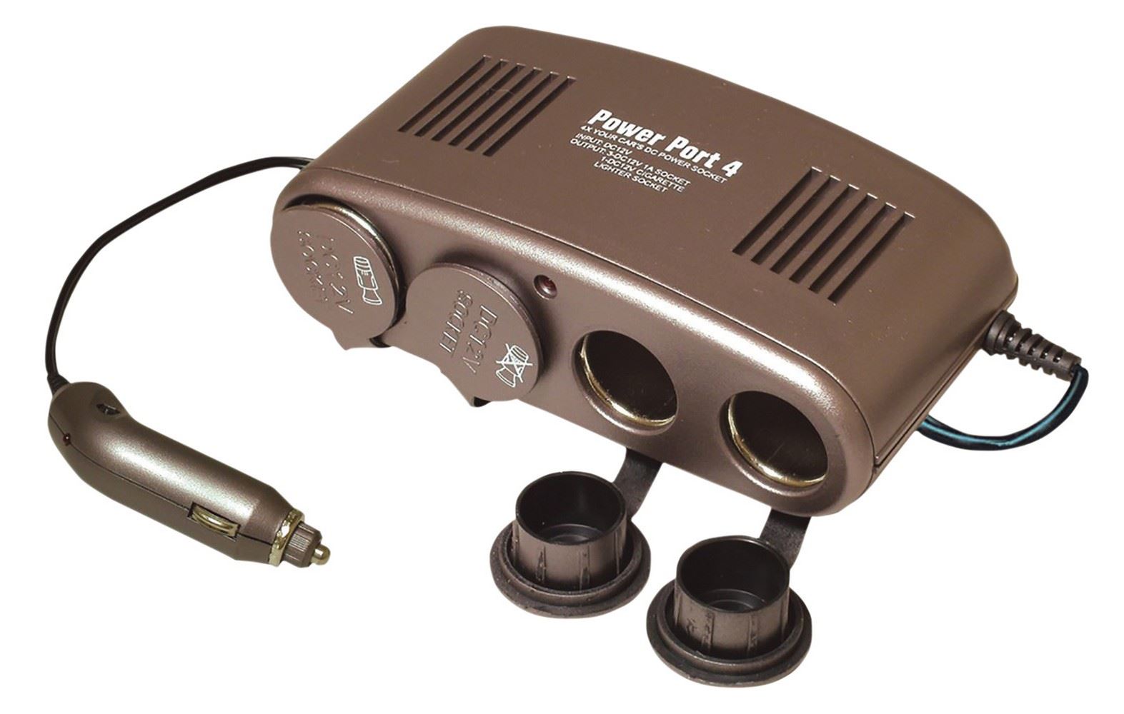 Bumper 4-Way 12V Car Power Socket Adaptor 10AAllows up to 4 Products to Use one Car Power Socket Works with All Vehicles Fitted with a standard 12V Car Power Socket Includes Adhesive Pads and Screws for Mounting 1.1 M extension lead Easy to use