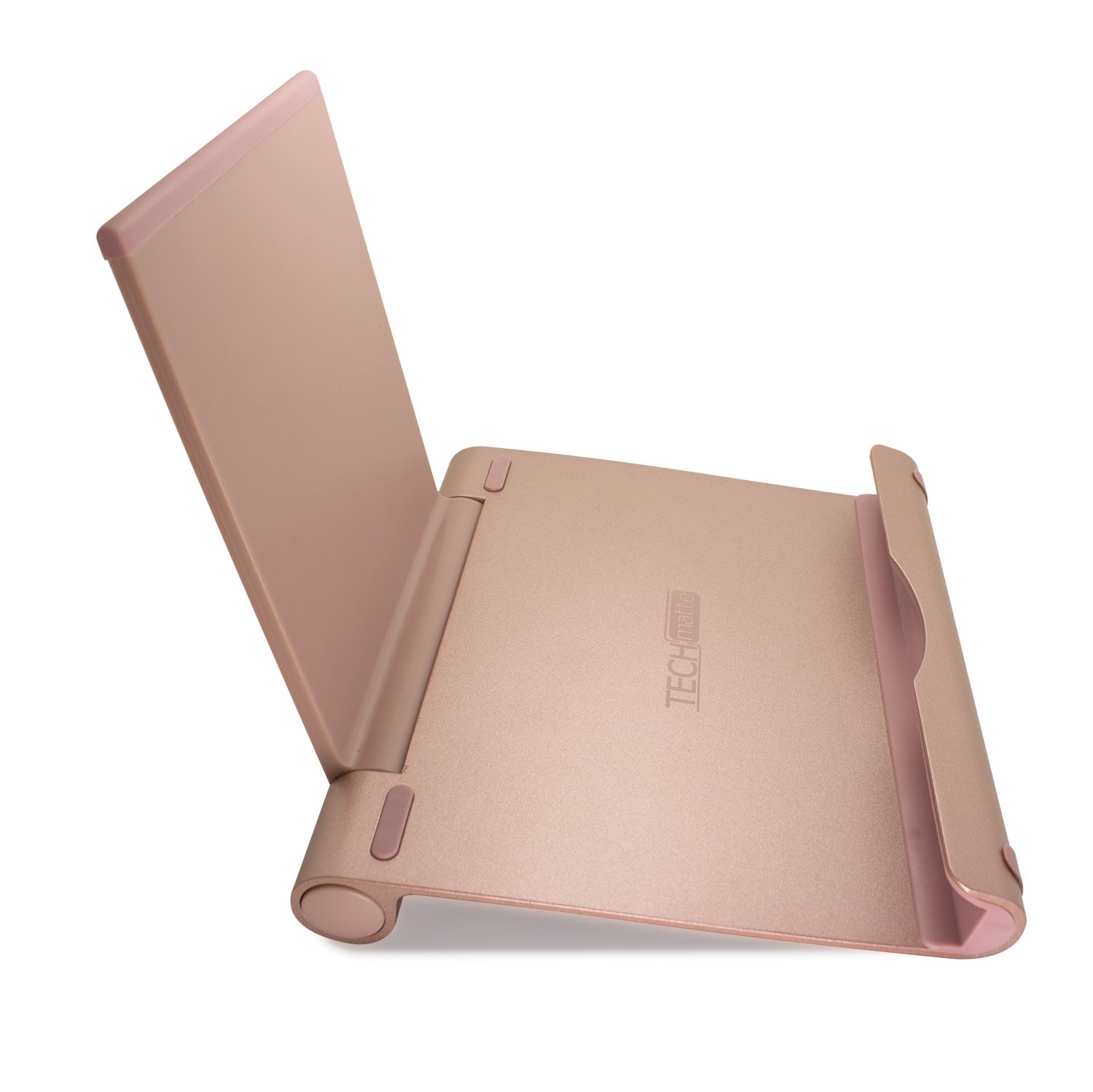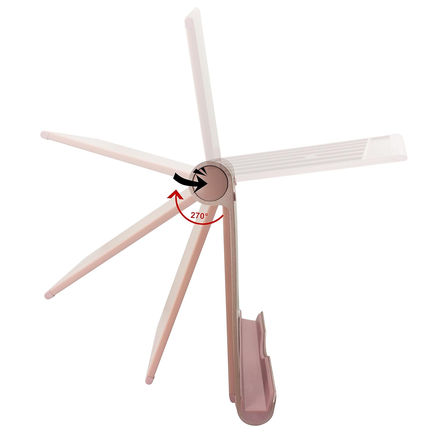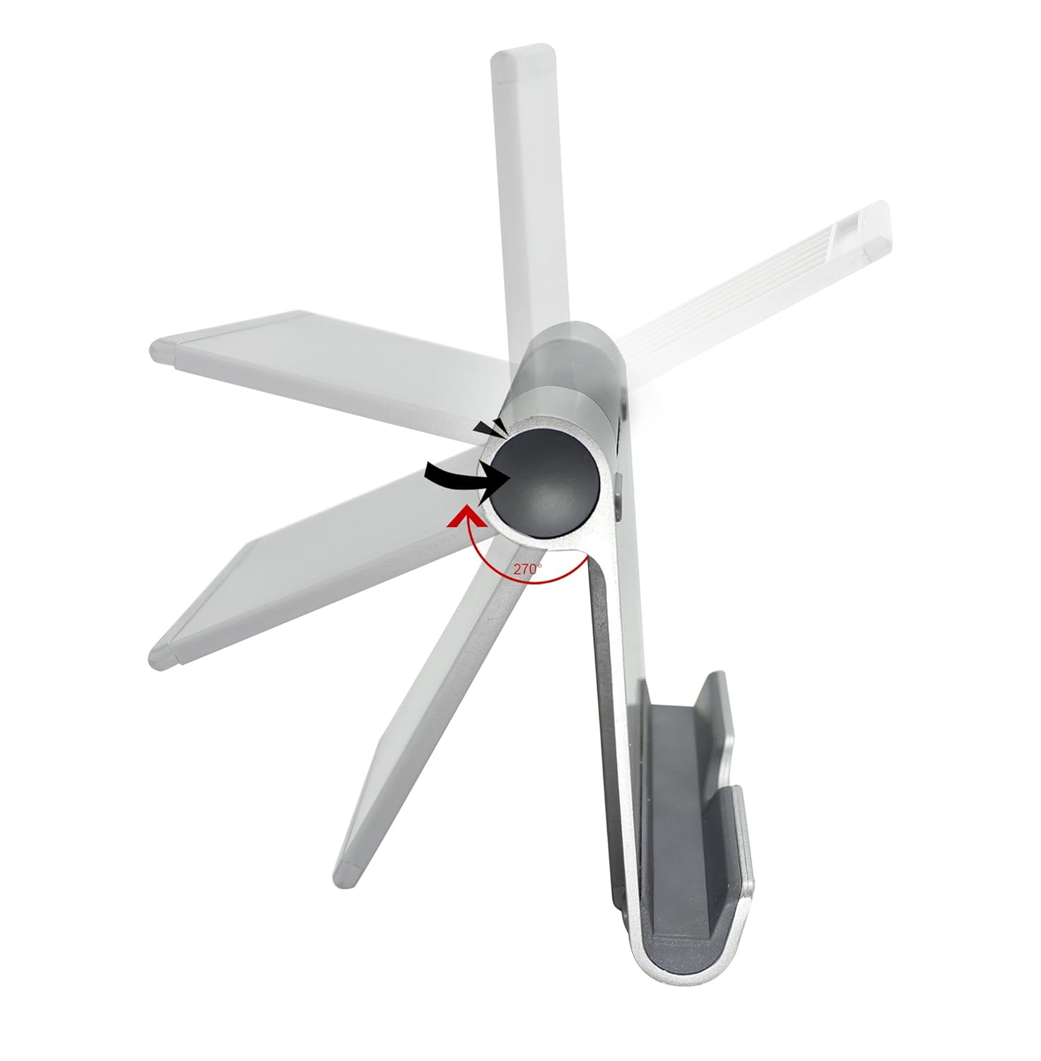SLEEK AND STYLISH: This iPad stand features two-tone colors to beautifully compliment your device. One-touch button and 270 degrees of rotation allow for quick and endless adjustments to the viewing angle