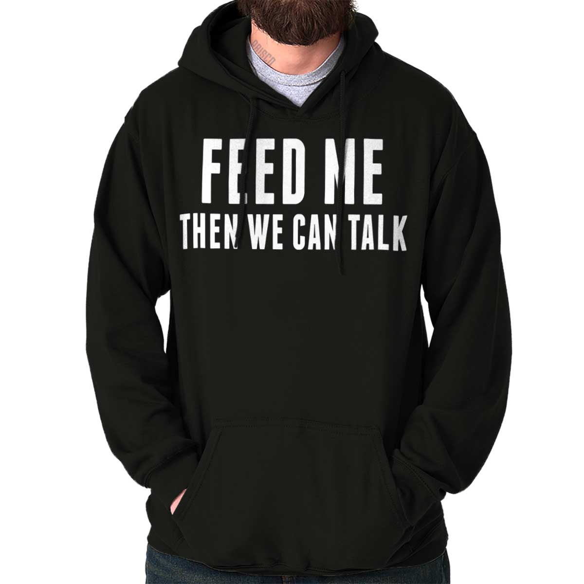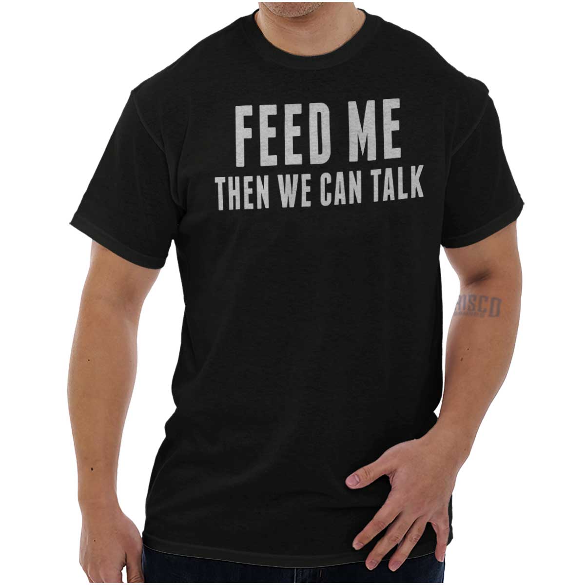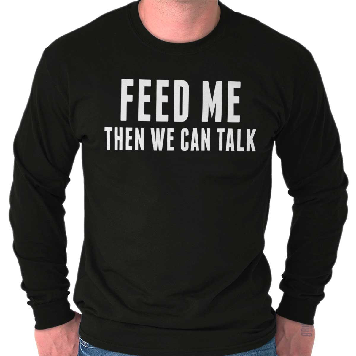 Hunger pains are not sexy. They are not becoming of anyone, but even worse for you. The literal feeling of emptiness can leave even the fiercest woman moody and unappealing. Let those around you know that they do not want to partake in your grumpiness. With this funny T Shirt, state your feelings right on your chest: “Feed Me Then We Can Talk”. Even if your stomach is not full, you can look sexy and feel comfortable while asserting your moodiness is just part of your cravings. Sarcastically show that it can be fixed – just feed me!