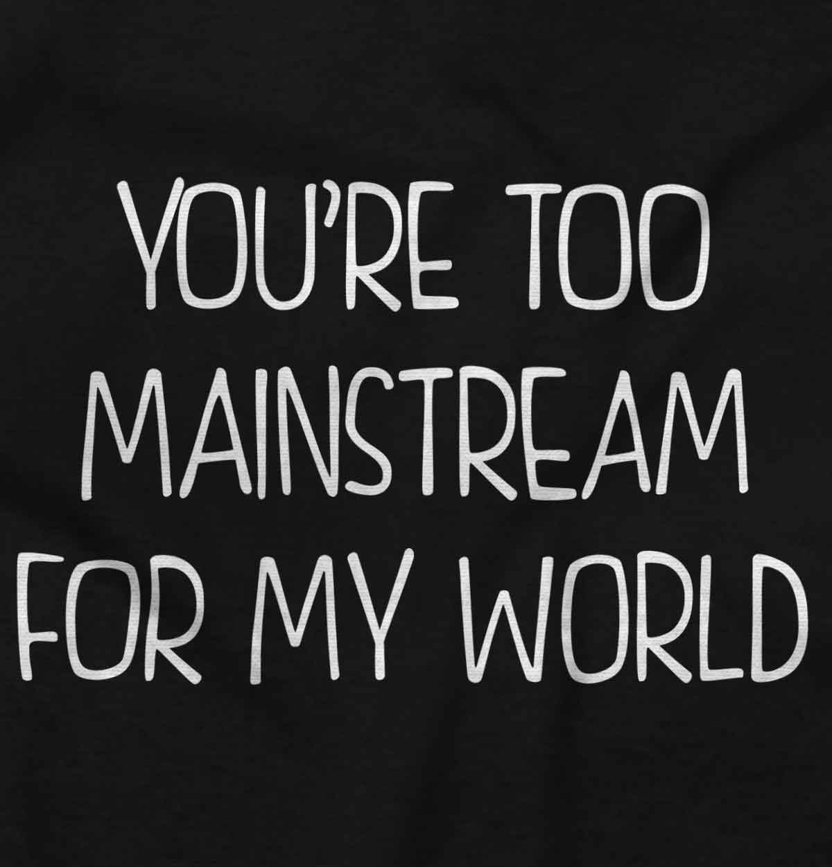 You are alternative. You are not a mainstream drone that follows the crowd. No, you are the underground hipster that changes the world. Your world is nothing like all the popular trends and styles so show people that with this T Shirt. You listen to music no one has heard of, you don't look for magazines to show you the latest fashion you make it up yourself. When the world is running forward you turn around and run back. Show others that they are too mainstream for your world with this T Shirt. You're the only one who will be wearing it.