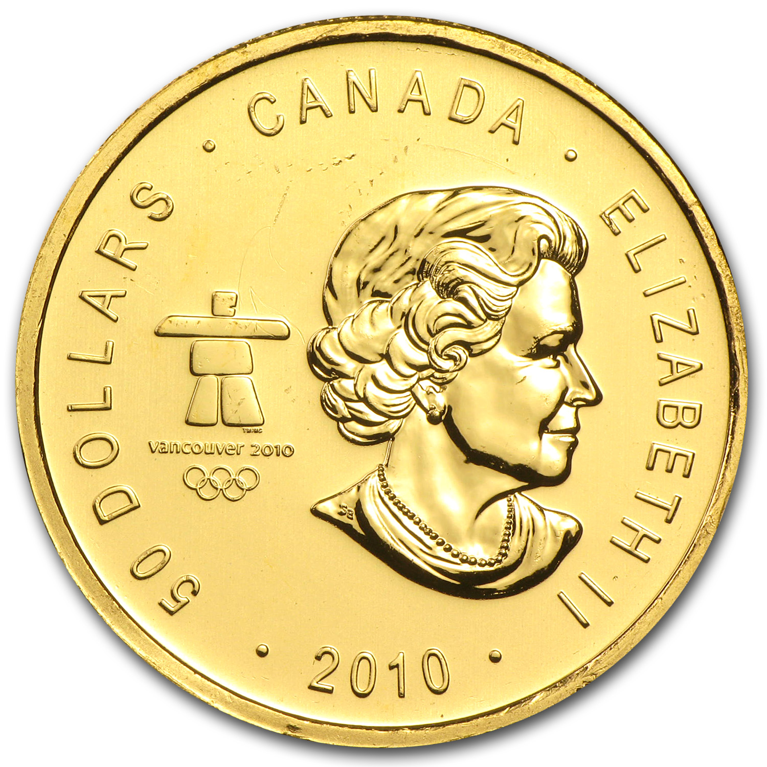 - Obverse: The Susanna Blunt designed likeness of Queen Elizabeth II alongside an image of the 2010 Olympic Winter Games logo. Also features the denomination and year of production.