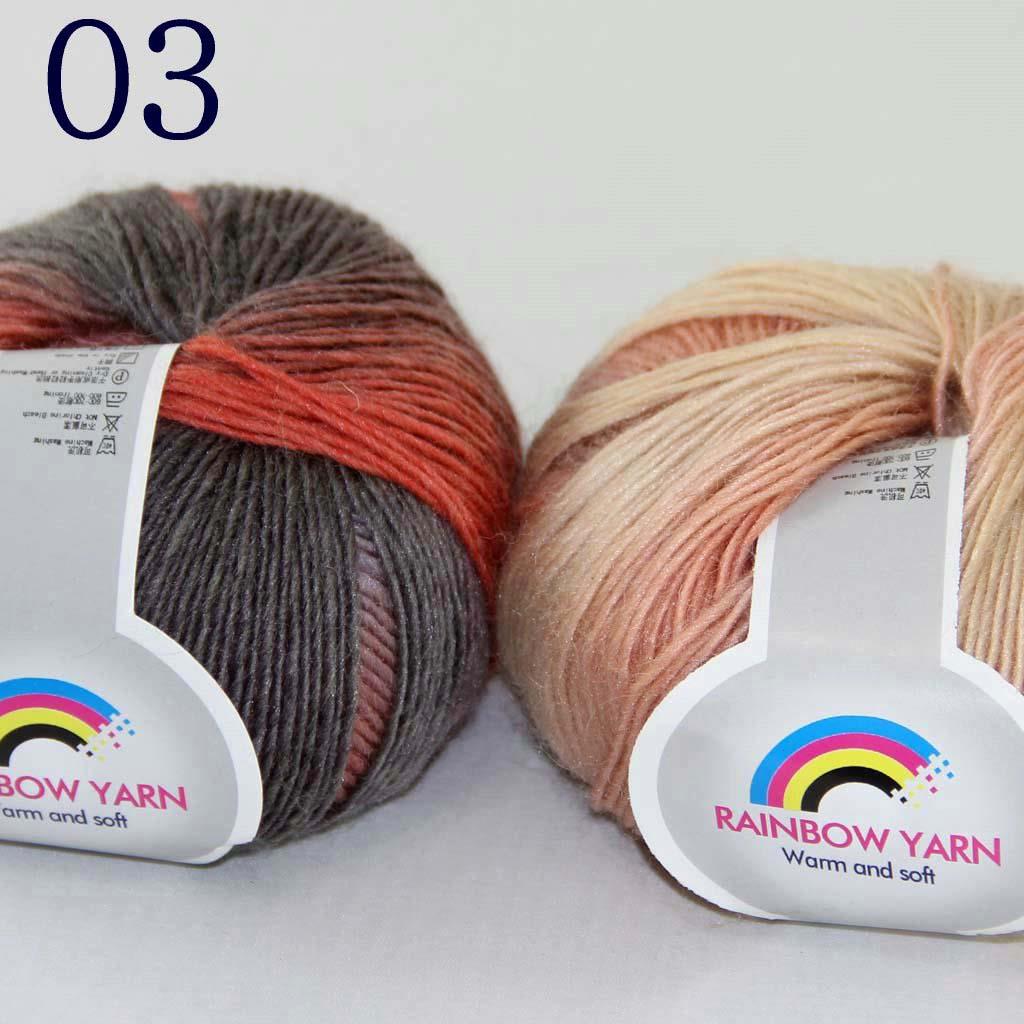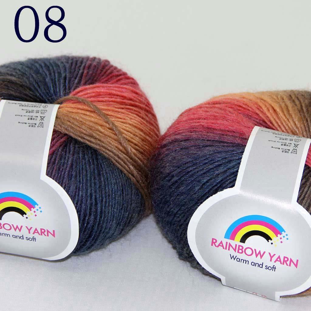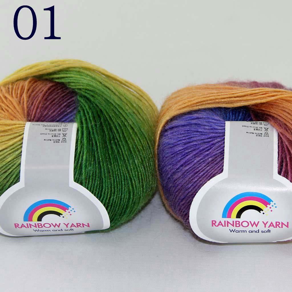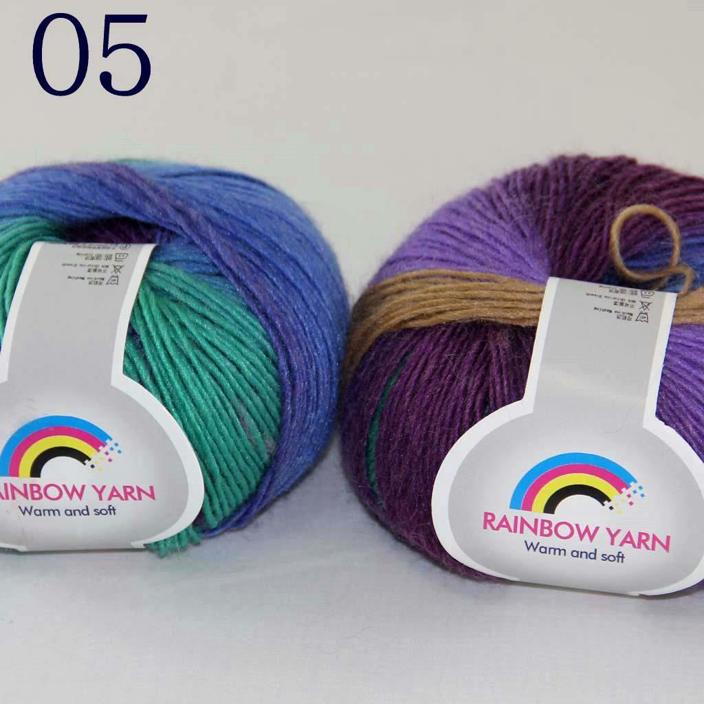 50gr Ball Soft Cashmere Wool Colorful Rainbow Shawl Hand Knit Yarn #524