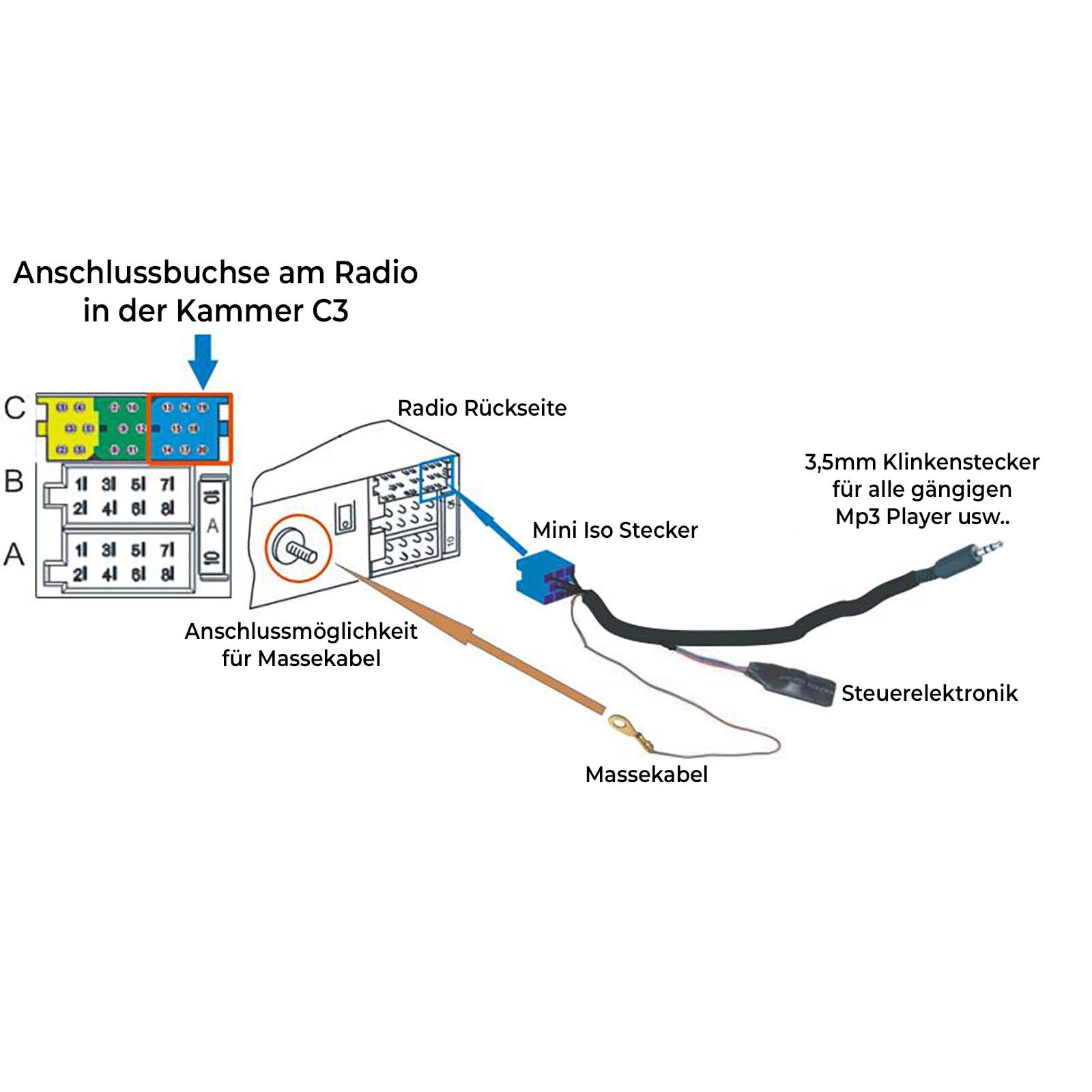 La entrada Aux Line In de su radio se activa a través de la interfaz y permite la reproducción de fuentes de audio externas.