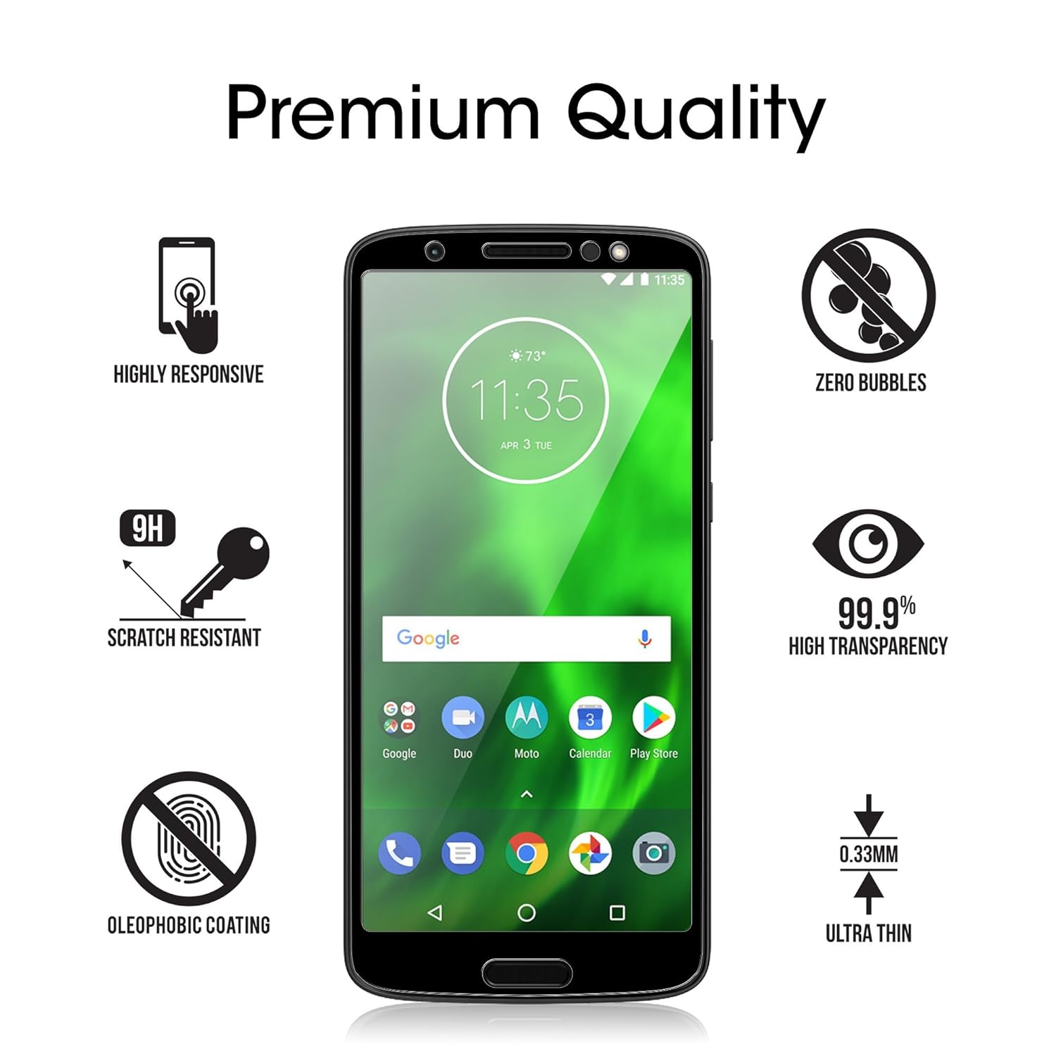 amFilm Premium Glass Screen Protectors are made from superior quality tempered glass, and specifically designed to fit your Motorola Moto G6 or G6 Play. These Glass Protectors provide case friendly coverage as well as an ultra-clear viewing experience with 99.9% screen transparency. They also feature our state of the art Dot Matrix technology, which offers complete screen protection by effectively reducing unwanted bubbling and halo effects. Plus, they are extremely durable with a surface hardness of 9H, which shelters against scratches, chips, drops, and other normal signs of wear. These very resilient (.33mm thin) screen protectors will not interfere with the screen sensitivity of your Moto G6 or G6 Play, resulting in an optimal user experience.