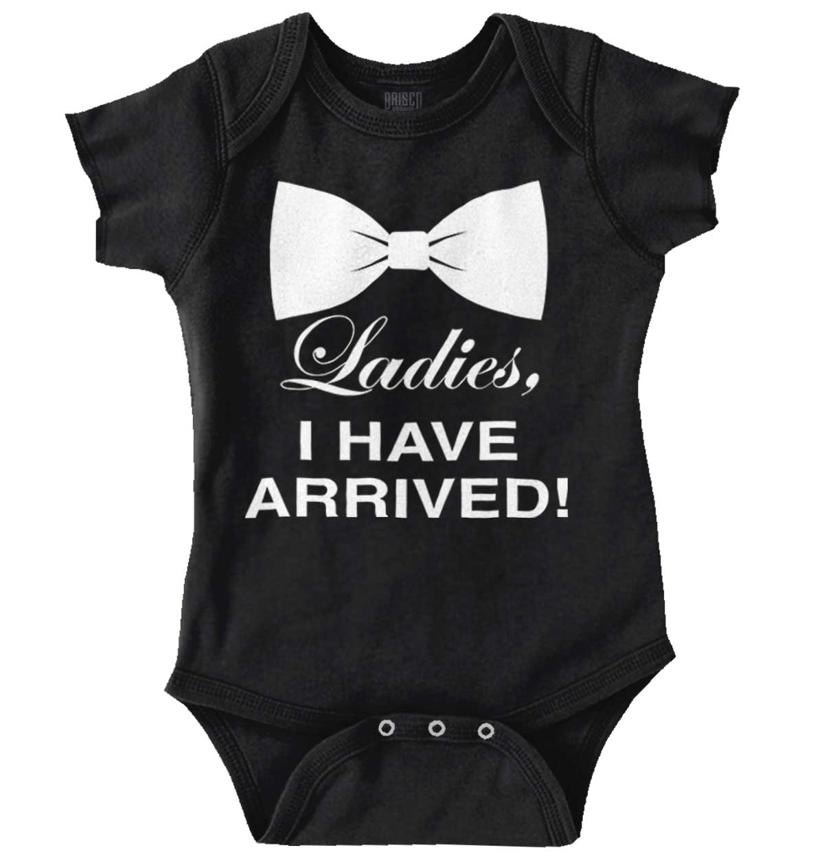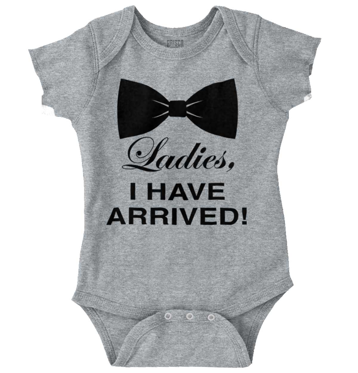 Wearing a bow tie gets you noticed! It is a stylish and confident statement that a man makes through fashion, illustrating that he doesn’t care what anybody else thinks! He knows his inner greatness and externalizes it with some purposeful panache! With this handsome Romper Bodysuit, the little man in your life can sport this awesome accessory for himself while exuding all of its inherent attitude: “Ladies, I have arrived!” No need for a silky piece of fabric he won’t even be able to tie! Showing off through fashion should never be difficult.