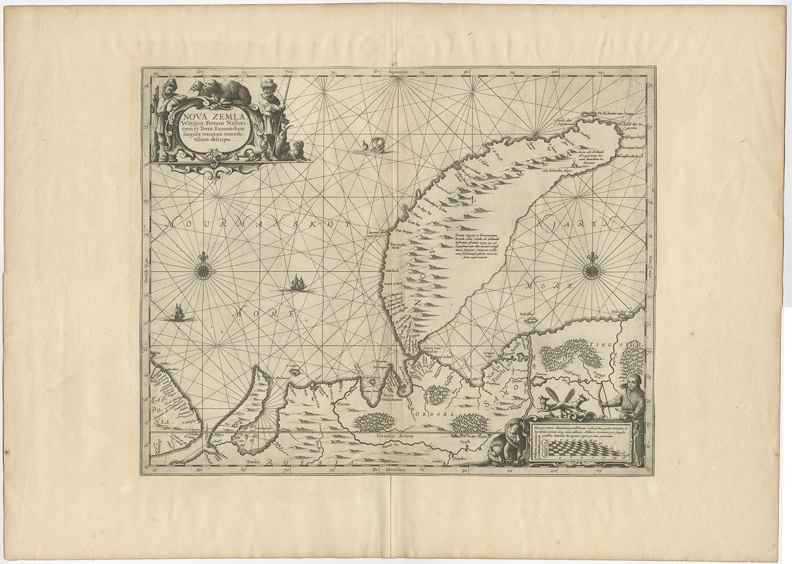 Antique Map of Nova Zembla by Janssonius (c.1650) $ 466.64 Availability: in stock Condition : Good. Margins extended, edges mounted to paper. Please study image carefully. Date : c.1650 Overall size : 76.5 x 55 cm. Image size : 51 x 41 cm. Description: Antique map titled 'Nova Zemla, waygats fretum Nassovi cum et terra Samoiedum singula omnium emendatissime descripta'. This map depicts Nova Zembla and the northern continental coastline. Originates from 'Het Vijfde Deel Des Grooten Atlas, Vervatende De Water-Weereld (..)'. Artists and Engravers: Johannes Janssonius also known as Jan Jansson (1588-1664) was born in Arnhem, Netherlands. His father was a bookseller and publisher (Jan Janszoon the Elder). When he married the daughter of the cartographer Jodocus Hondius he also set up a business as book publisher in Amsterdam. His first map was published in 1616. Around 15 years later he set up a partnership with his brother in law Hondius add issued further editions of the Mercator/Hondius atlas. After his death his heirs still have published several maps. Many of his plates have been acquired by Pieter Schenk and Gerard Valk. |