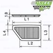 Dieser GREEN RACING Baumwollfilter hat die folgenden Maße: