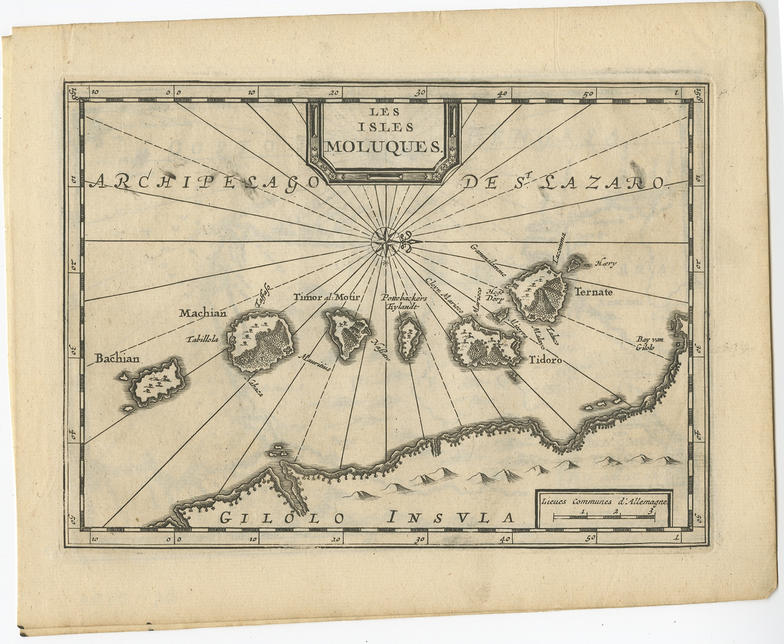 Antique Map of the Maluku Islands by Van der Aa (1714) $ 233.61 instead of Availability: in stock Condition : Very good, please study image carefully. Date : 1714 Overall size : 23.3 x 18.5 cm. Image size : 19.7 x 14.3 cm. Description: Antique Map Moluccas titled 'Les Isles Moluques'. Rare map of the Spice Islands made after a map engraved by Pieter van den Keere and published in the 1628 edition of the Mercator Atlas Minor. This edition originates from 'Atlas Soulage'. The cartouche and compass rose are revised and the title is in French. Artists and Engravers: Pieter van der Aa (Leiden 1659-1733) was a Dutch publisher best known for preparing maps and atlases. |
