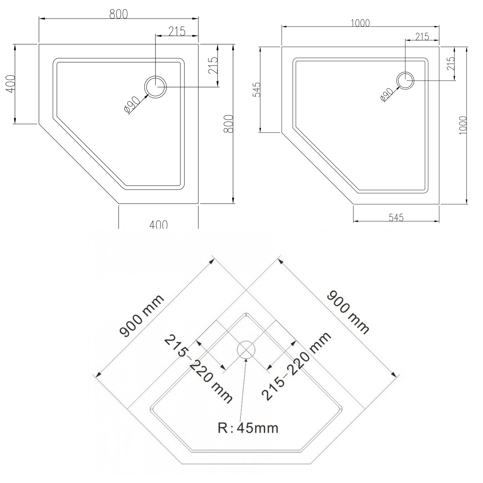 BERNSTEIN Klassisch moderne Fünfeck-Duschwanne aus robustem und langlebigem Sanitäracryl - ideal für Ihre Eckdusche