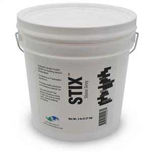 STIX is a fast setting stone colored mortar system designed for aquascaping freshwater, marine and reef aquariums. The kit includes the dry cement, liquid polymer admixture, and a spatula to assist you with mixing in the bucket.
