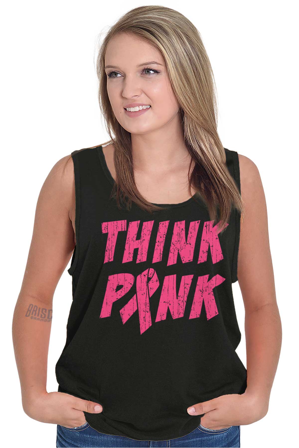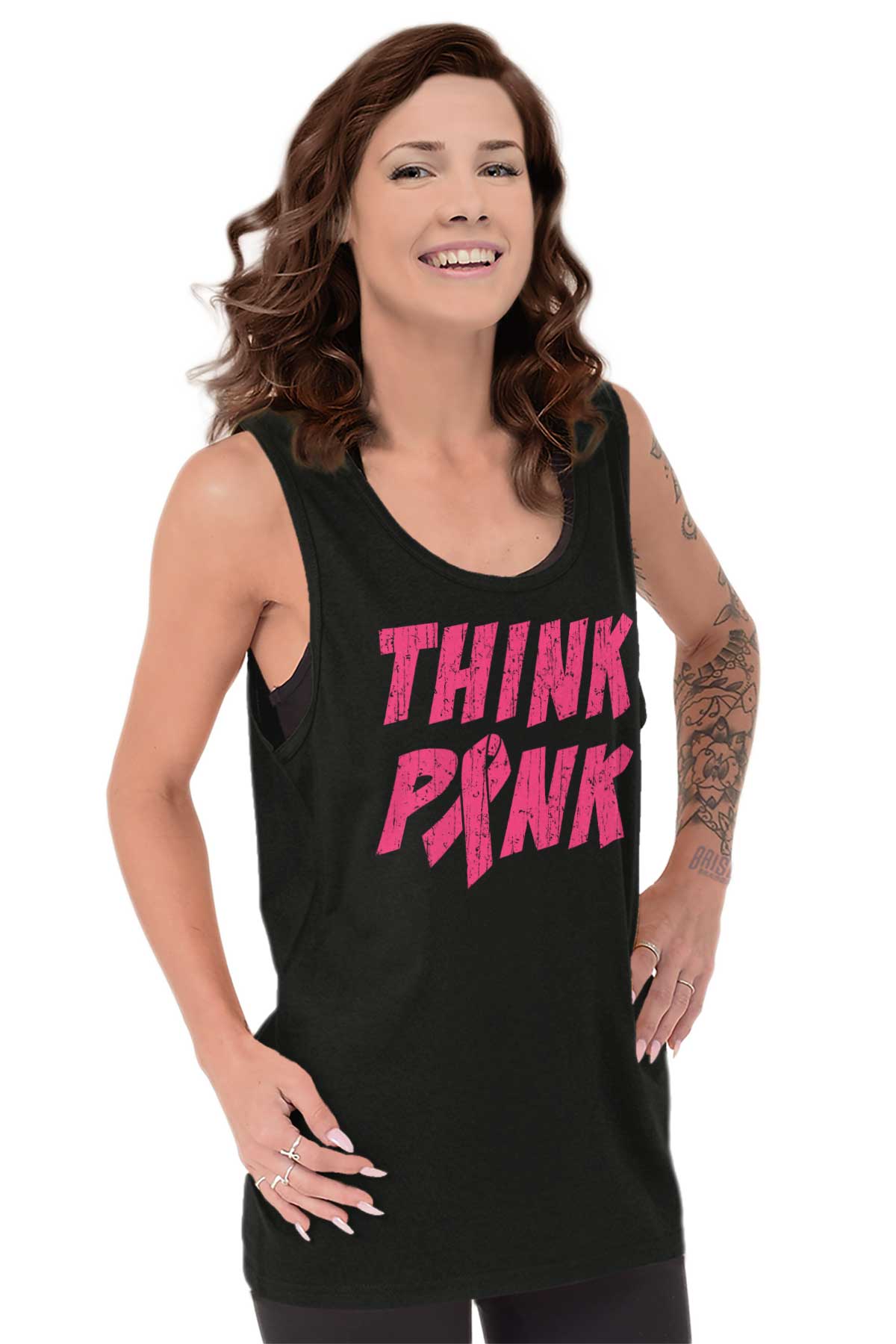 Someone in our department said they saw a special on television yesterday. Don’t quote us on this, but apparently scientists have proven there are certain animals that don’t think in words or sentences - they think in color. That’s pretty damn cool. You know what else is pretty? The color pink. Not because it’s bright and reminds us of flowers. But because it represents courage. This beautiful color represents all of the women fighting Breast Cancer as we speak. Buy this Tank Top and help raise awareness. And the next color you think, think pink.