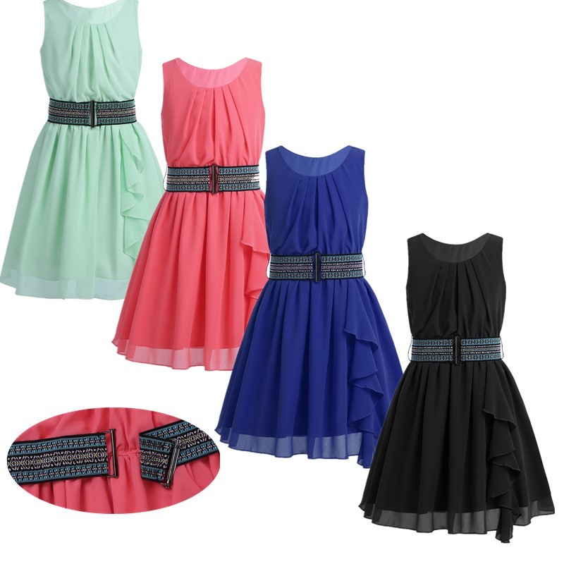 Dress is made of polyester and chiffon material, hand wash or dry cleaning.