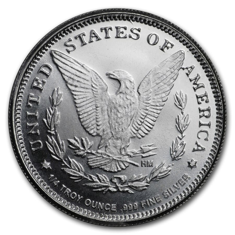 The iconic Morgan Dollar design is nationally recognized, thereby increasing the value of owning these rounds. Add this beautiful 1/4 oz Silver round to your cart today!