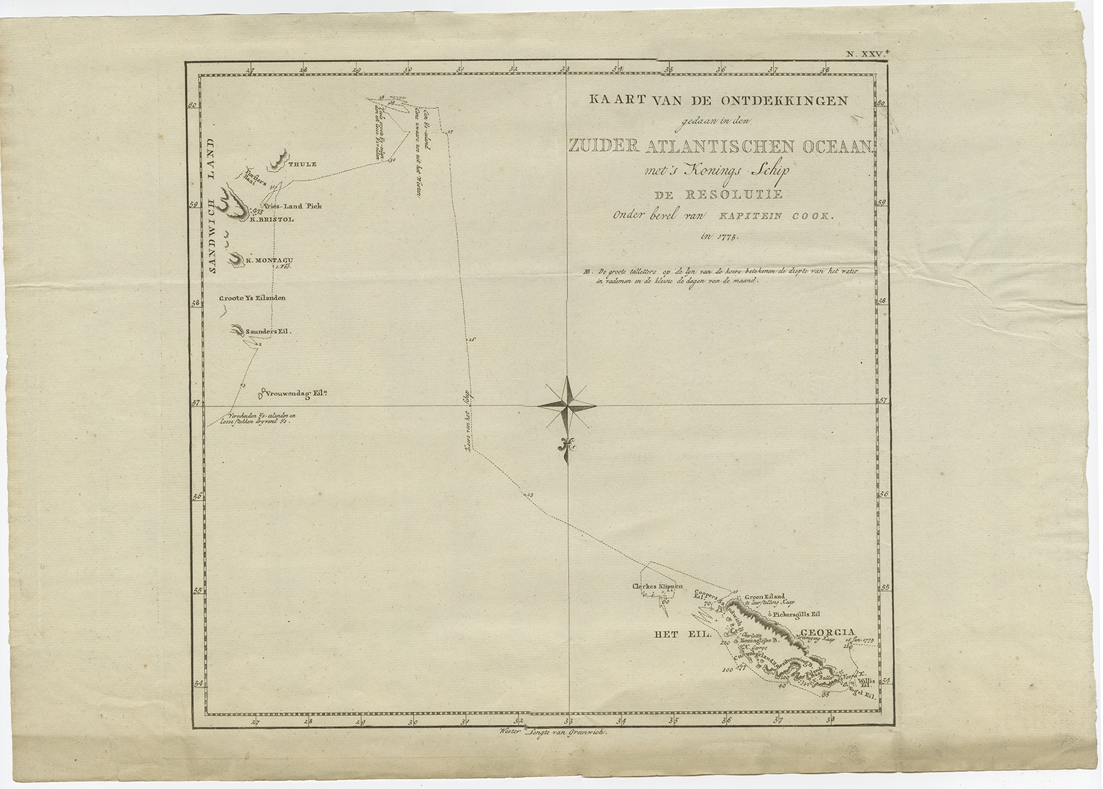 Antique Map of Southern Georgia and the Sandwich Islands by Cook (1803) $ 753.21 instead of Availability: in stock Condition : Good, general age-related toning. Some wear, please study image carefully. Date : 1803 Overall size : 50 x 35.5 cm. Image size : 32.5 x 30.5 cm. Description: Antique map Atlantic titled 'Kaart van de Ontdekkingen gedaan in den Zuider Atlantischen Oceaan (..)'. Antique chart depicting Southern Georgia and the Sandwich Islands. Originates from 'Reizen Rondom de Waereld door James Cook (..)'. Artists and Engravers: Translated by J.D. Pasteur. Published by Honkoop, Allart en Van Cleef. |